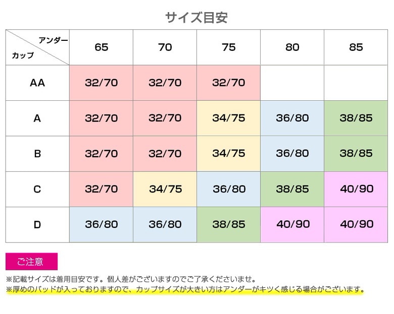 Size: 32/70 34/75(+299円) 36/80(+299円) 38/85(+299円)