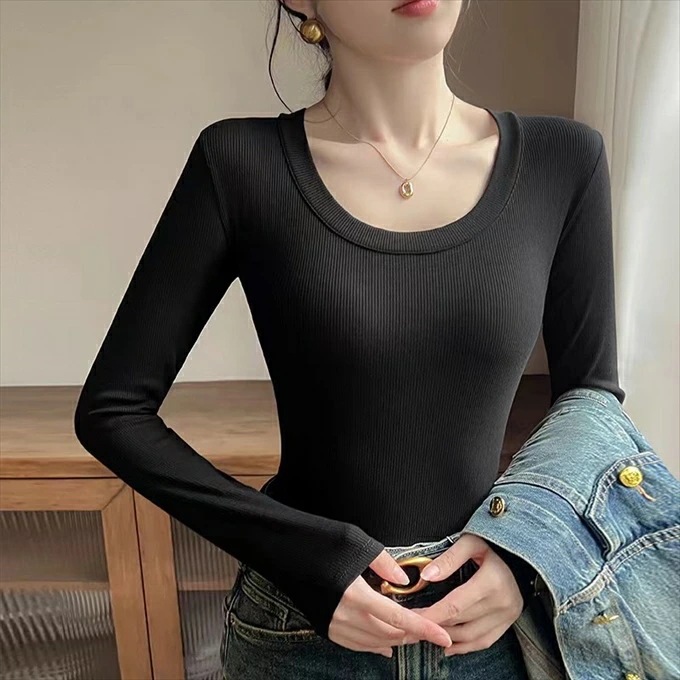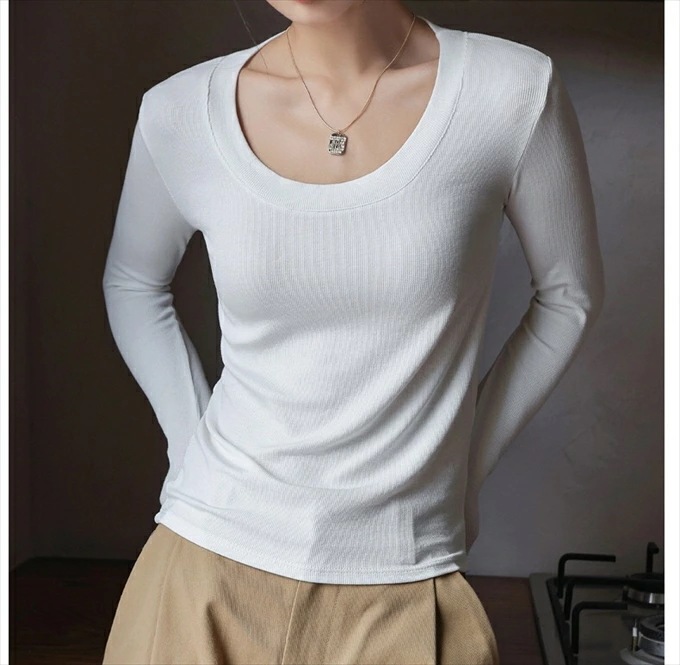 リブ ロンt インナー 長袖 tシャツ レディース レーヨン レイヤード 重ね着 落ち感 レーヨン素材としては厚手 黒 ブラック ブラウン グレー ホワイト 伸び感抜群 ストレッチ のびのび 長袖イ