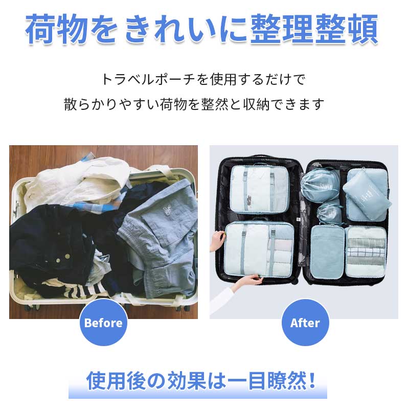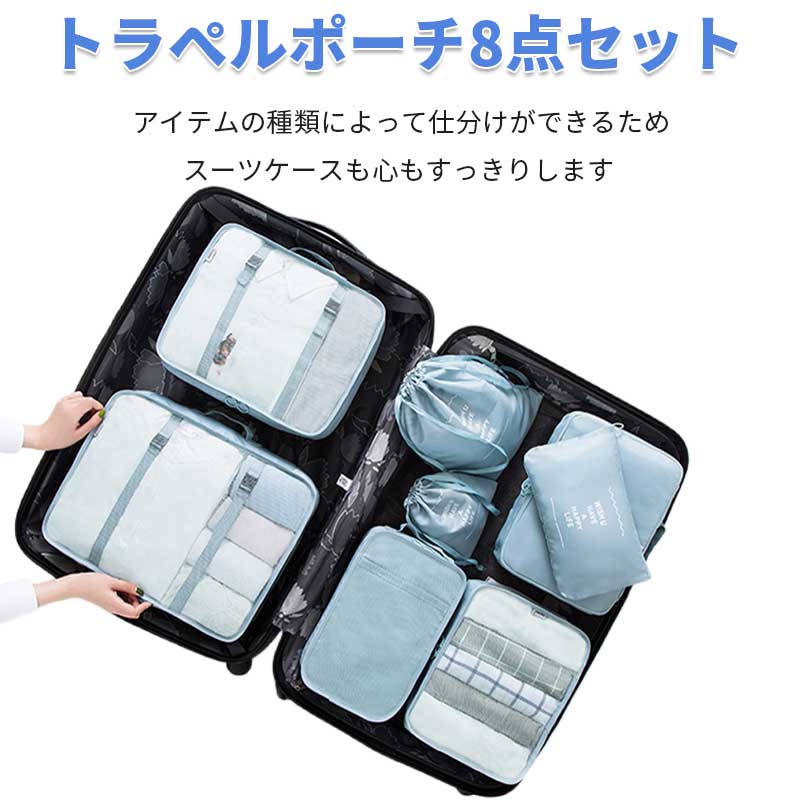 トラベルポーチ ポーチ セット おしゃれ 9カラー 8点セット 衣類収納ポーチ 軽量 折りたたみ スーツケース キャリーケース旅行バッグ パッキング トラベルバ