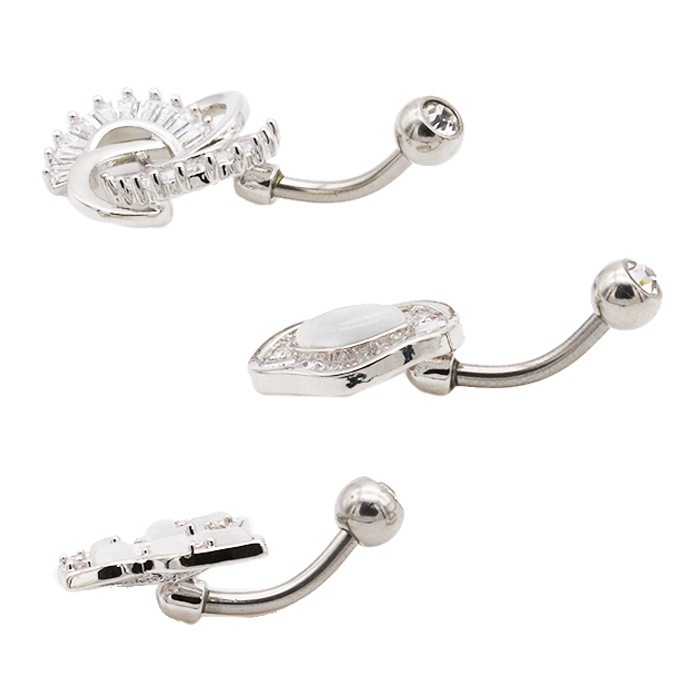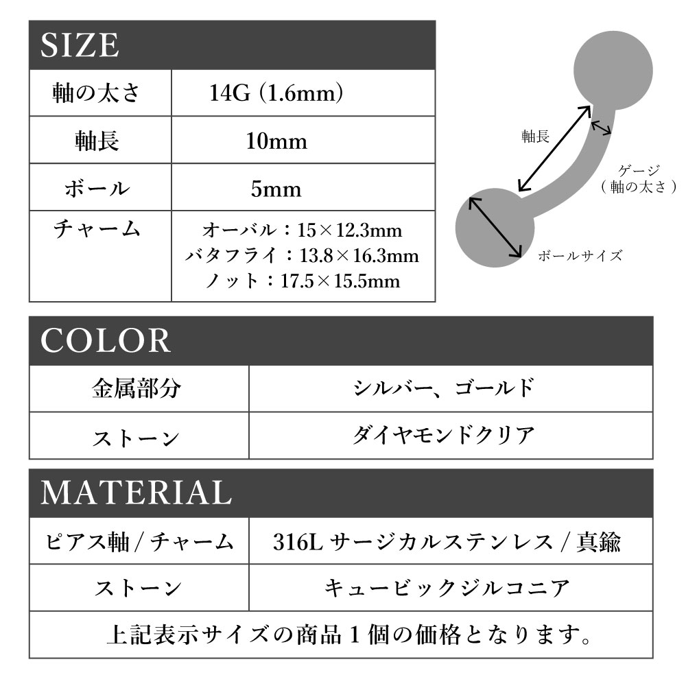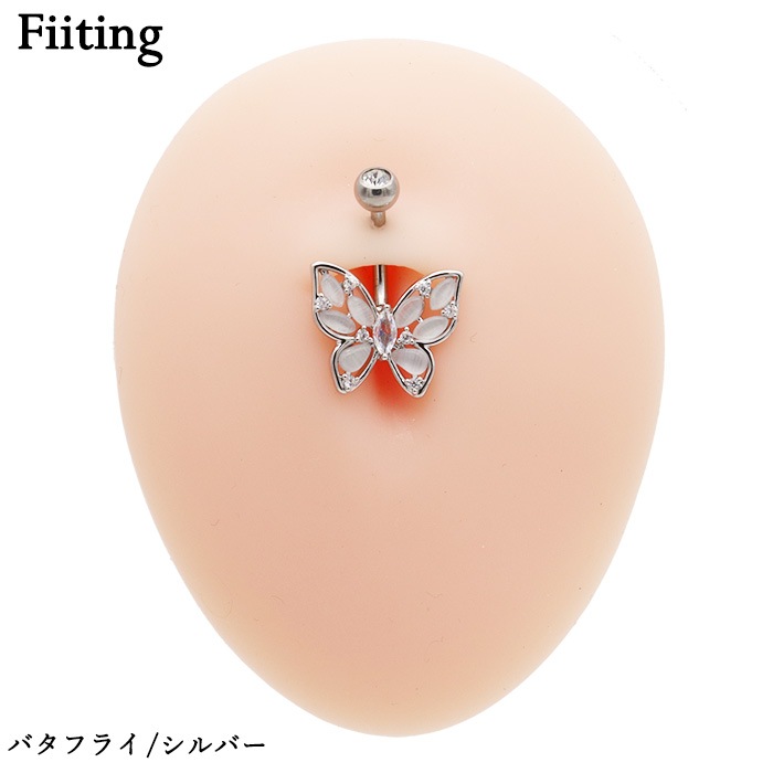 ヘソピアス 14G バナナバーベル ジュエル キャッツアイ ストーン バタフライ オーバル 変形 ジュエリー ボディピアス へそピ 316L サージカル ステンレス
