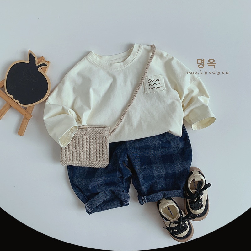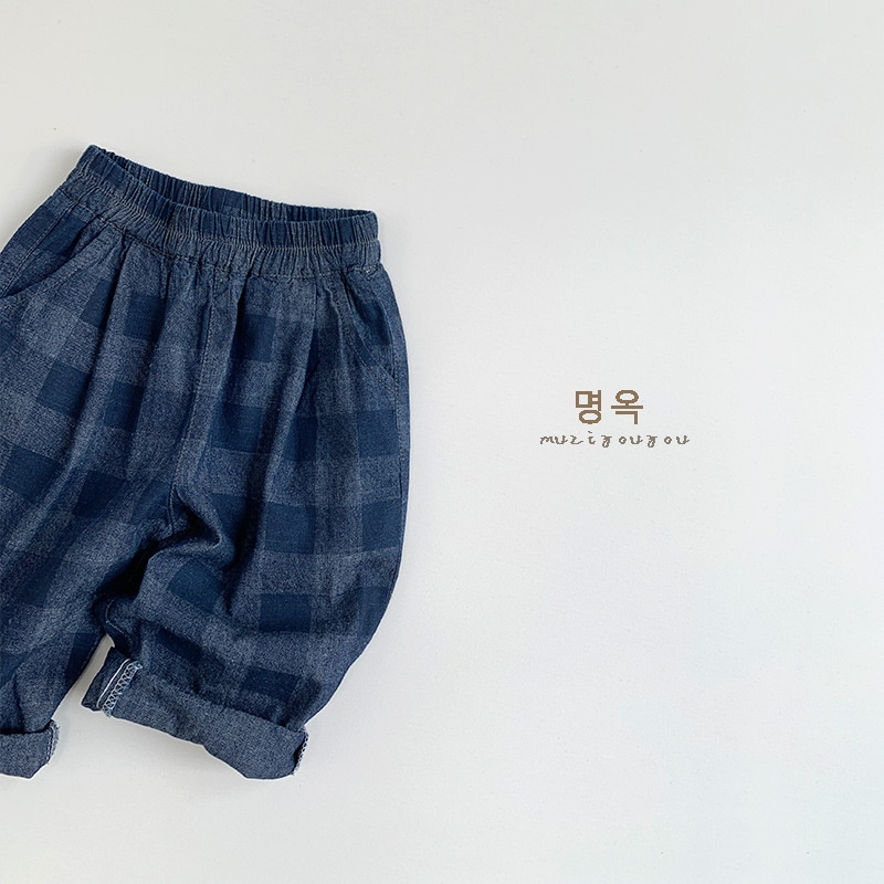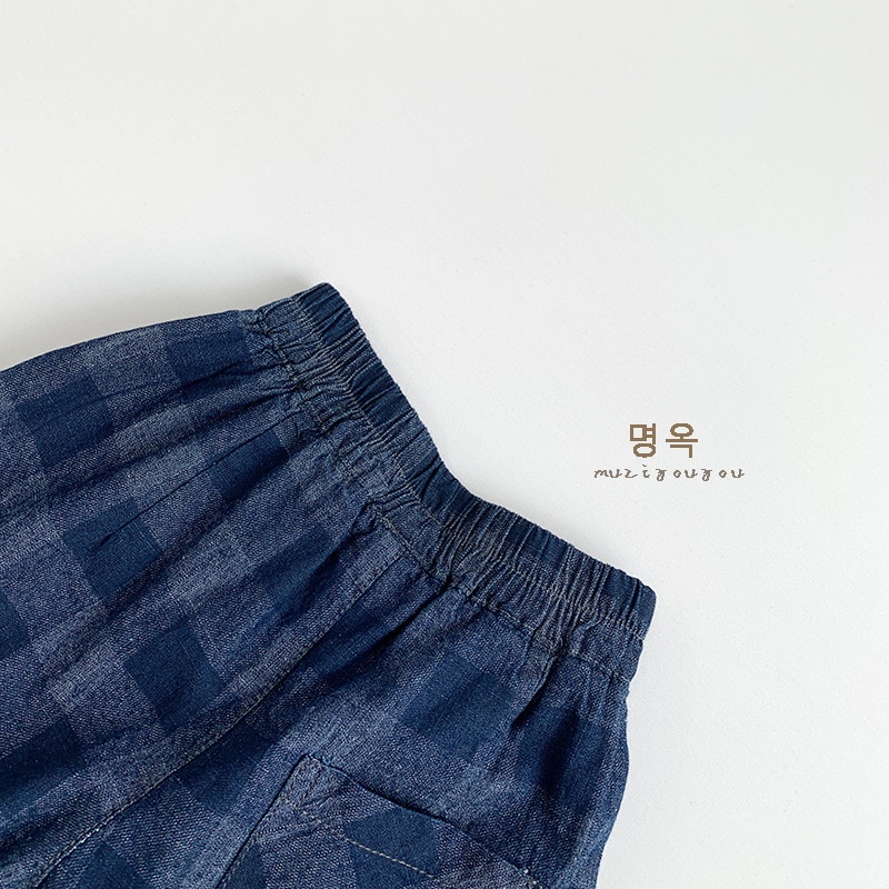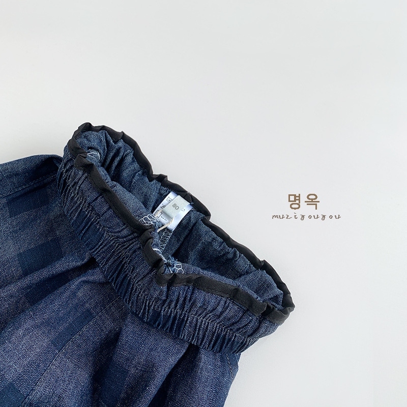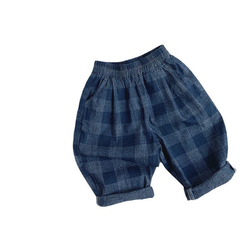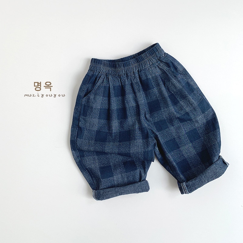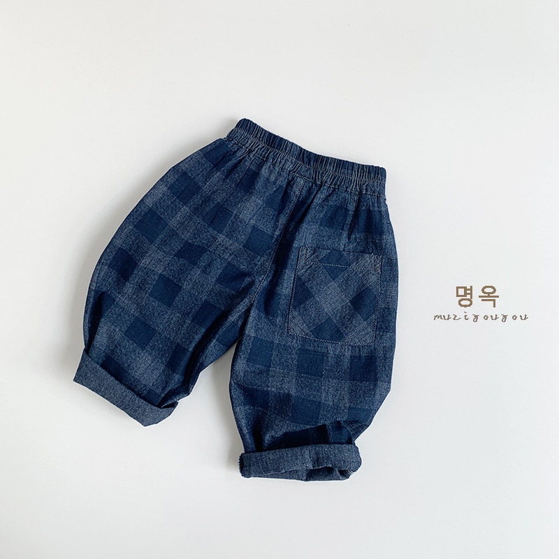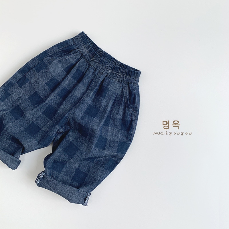 2025春モデル子供デニムチェックパンツ新型男女赤ちゃん韓国版日系カジュアル外着ロングパンツ ジョガーパンツ ボトムス