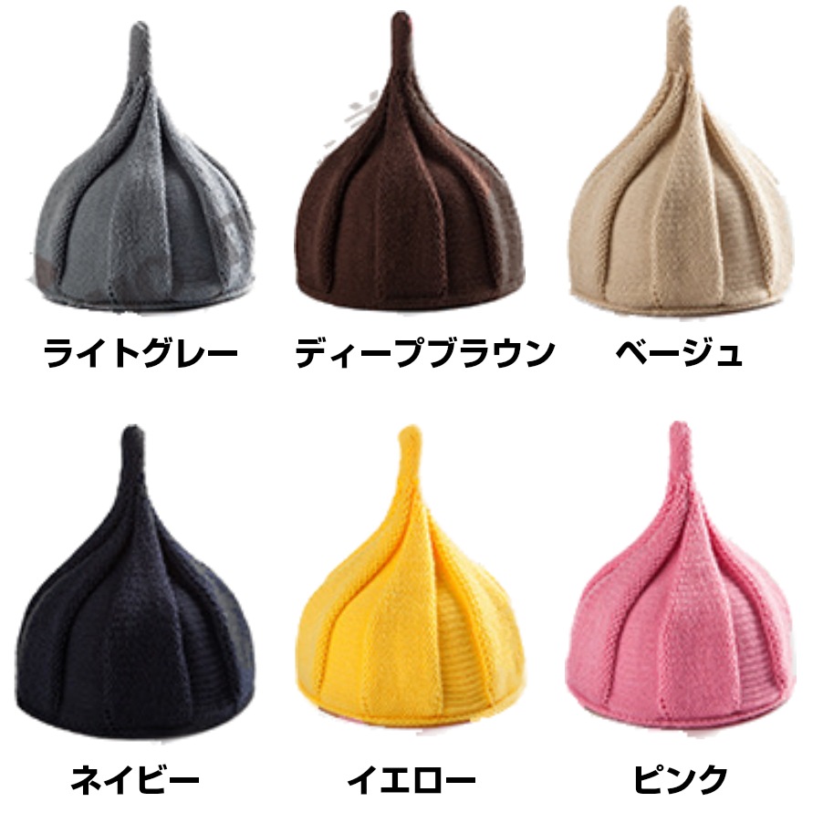 とんがりニット帽 キッズ 柔らかニット帽子 キャップ どんぐり レッド カーキ ブラック ブルー ピンク グレー ブラウン ベージュ イエロー