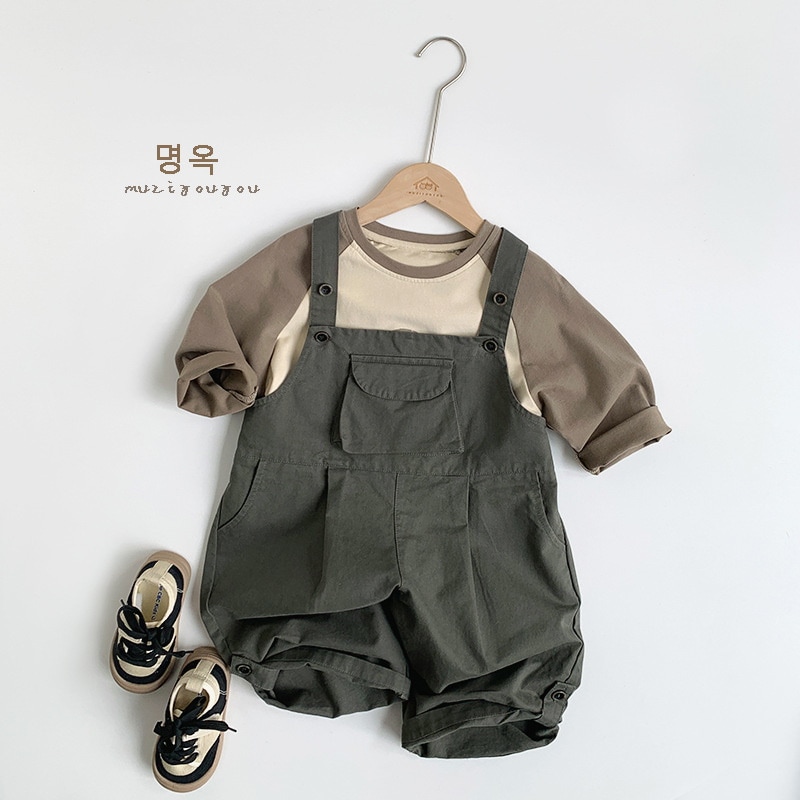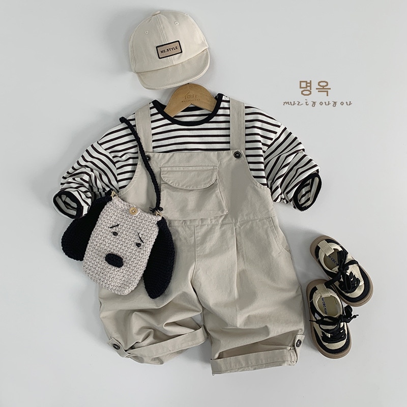 2024春モデル子供チョッキパンツ春新型男女赤ちゃん韓国版カジュアルパンツ日系ファッション子供服 サスペンダー付き パンツ ボトムス
