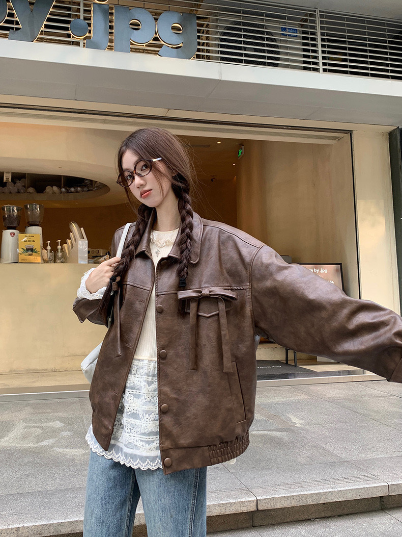 シアースリーブ ドッキングシャツ ボウタイシャツブラウス