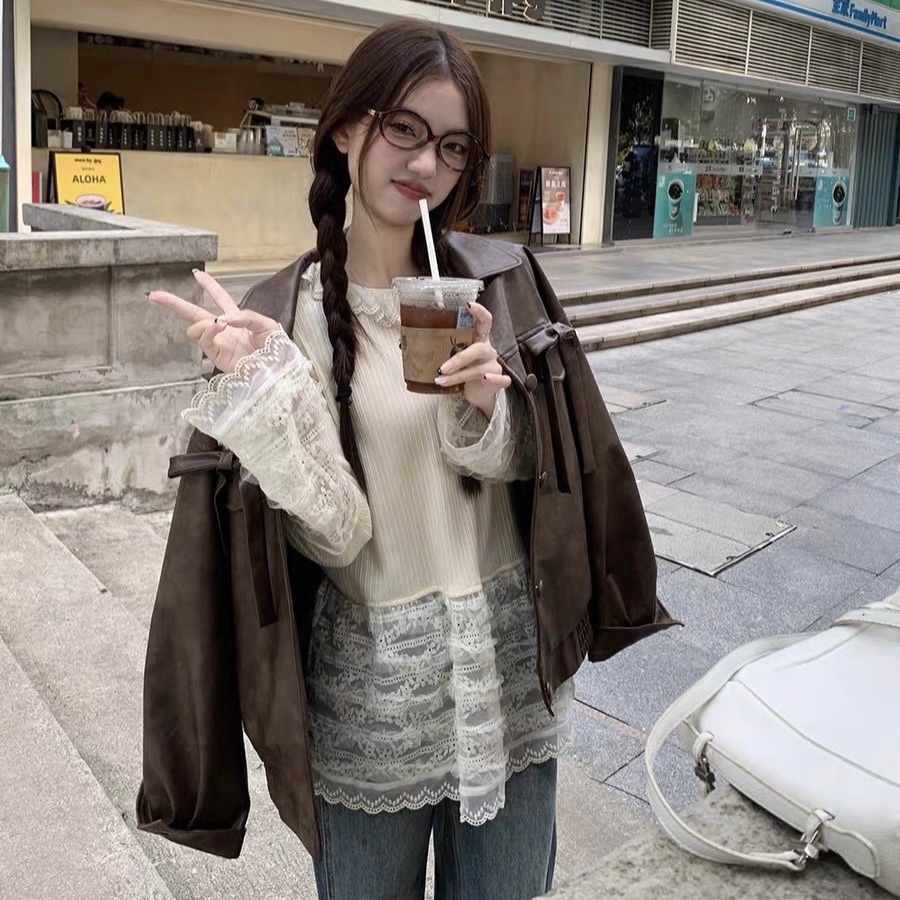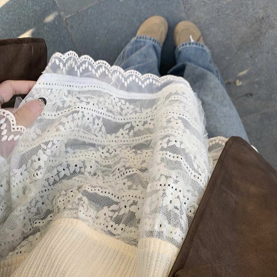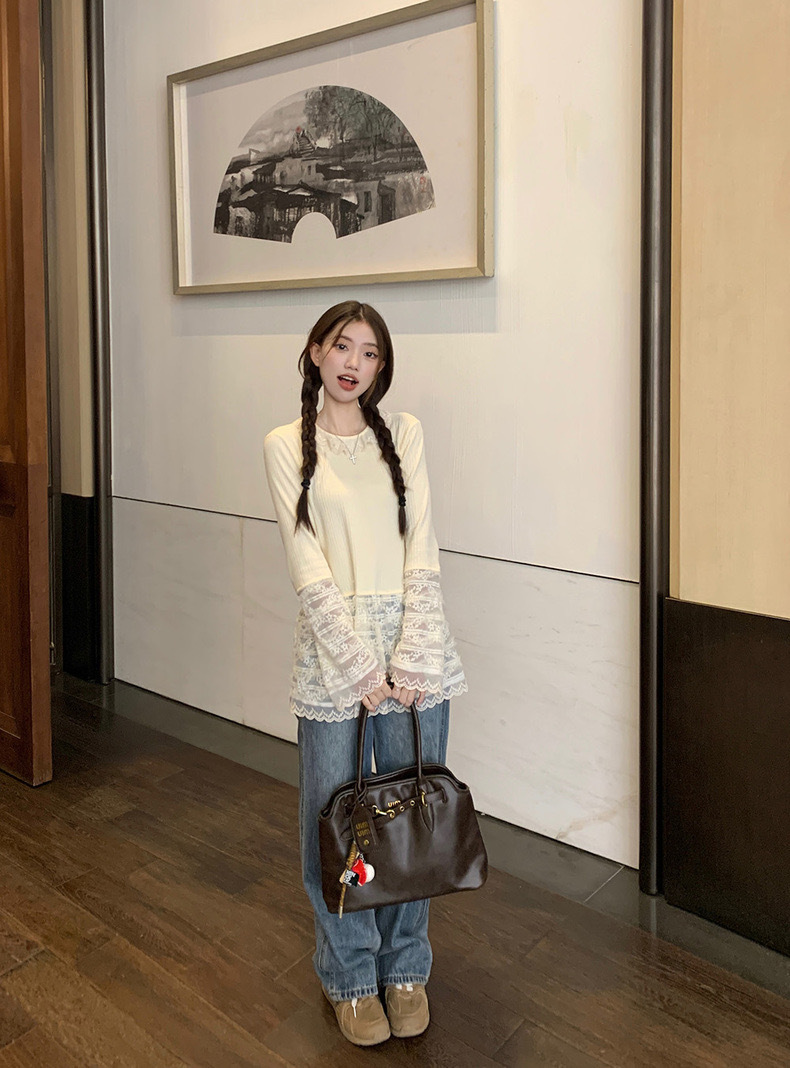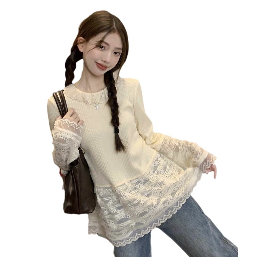 人気なリブニット セーター 甘い少女レースのボトムブラウス春と秋の新作インナー長袖トップス カシミヤタッチ ベーシックニット レディース 韓国