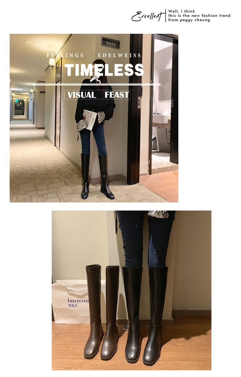 薄い靴 ネット赤 秋 冬の新しいスタイル ブーツ 女性 ファッション厚いヒール ミッドヒール ファッ ロングブーツ