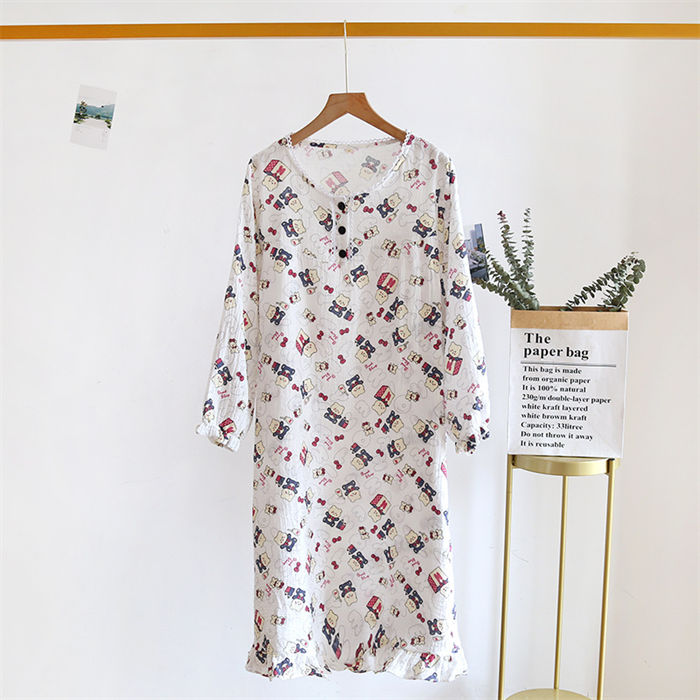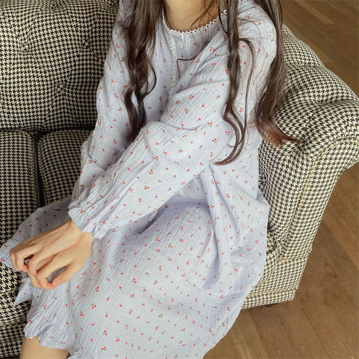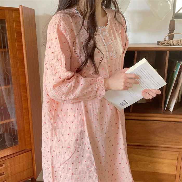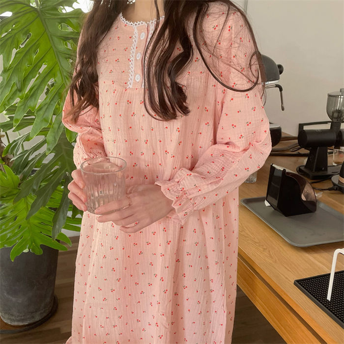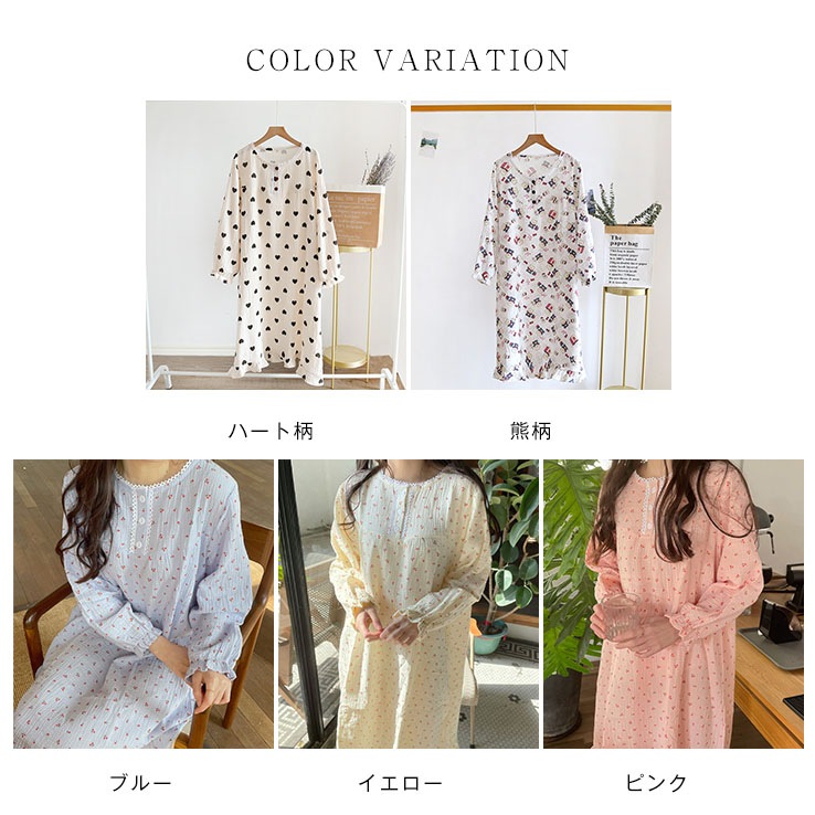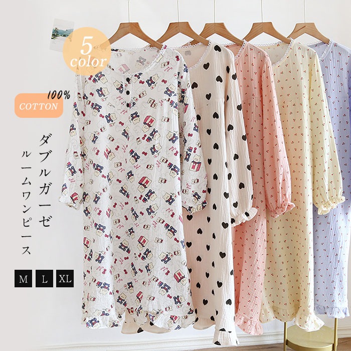 ルームウェア 部屋着 ワンピース 綿100% パジャマ ルームワンピース ワンピー レディース ダブルガーゼ 長袖 ロングワンピース シンプル 花柄 春 夏 秋 柔らか リラックス 大人 可愛い 体型