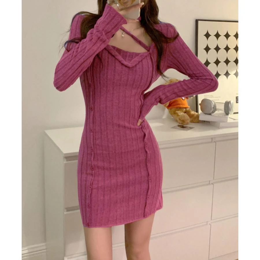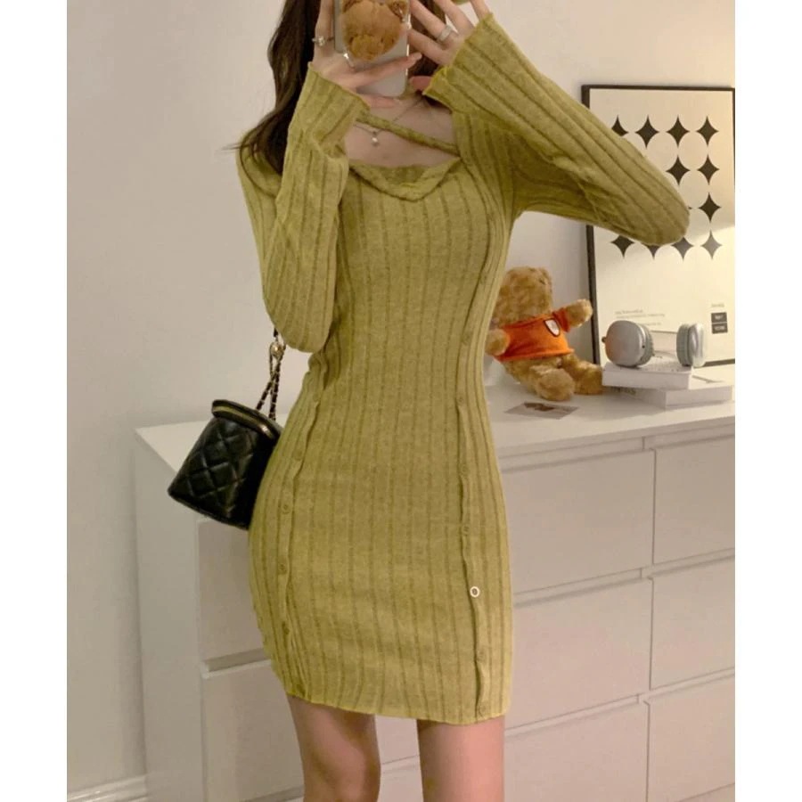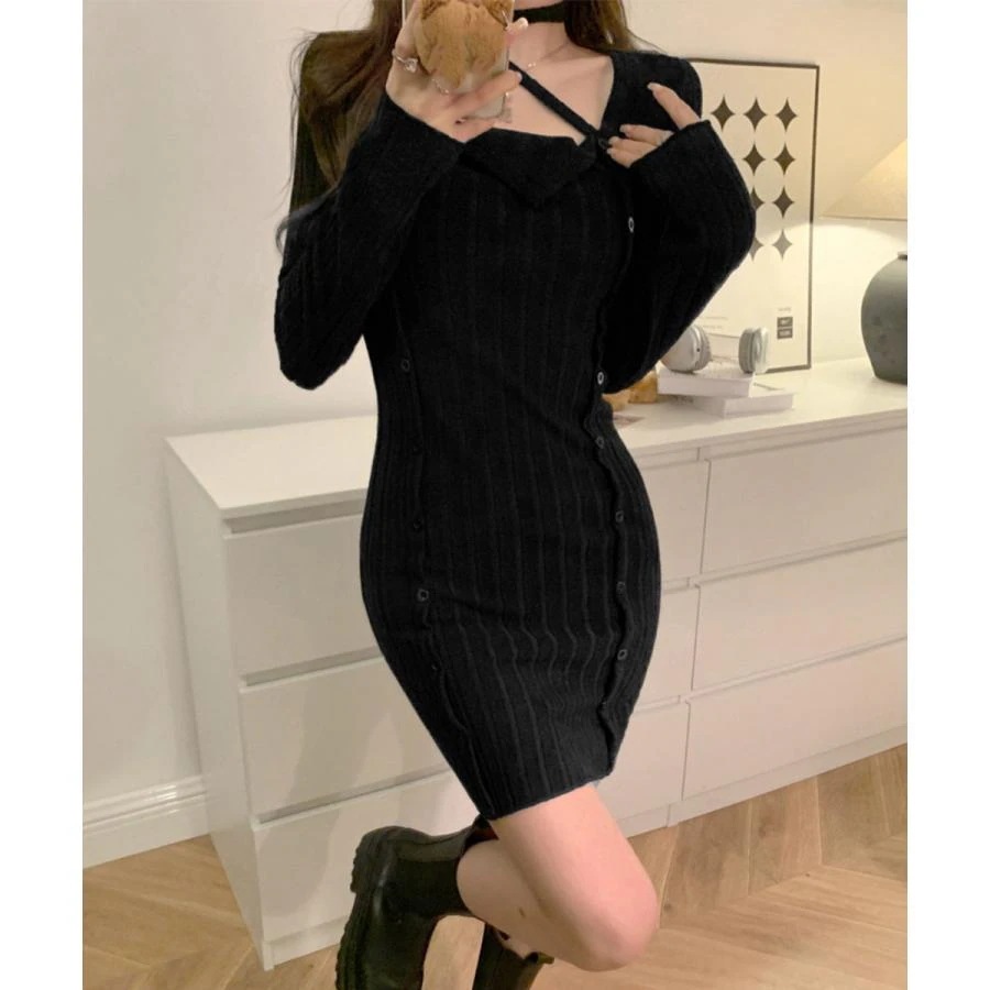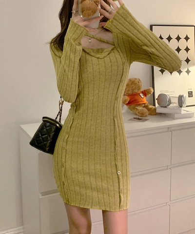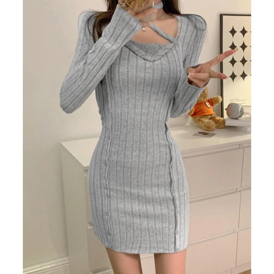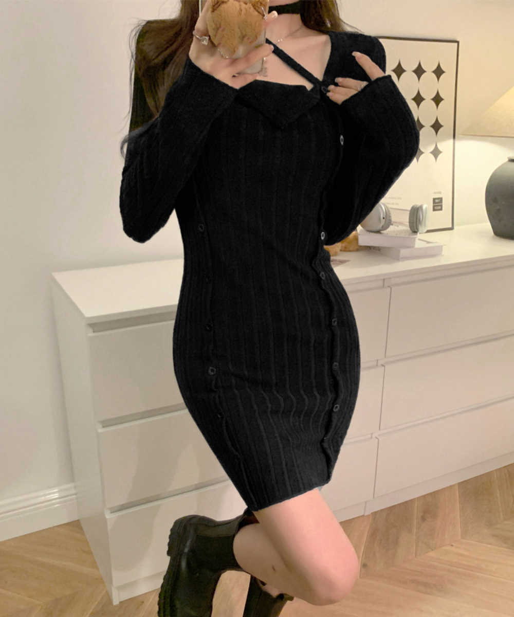 タイトミニニットワンピースホルターネック ニットワンピ