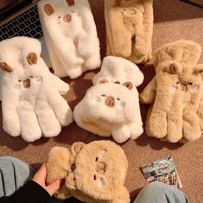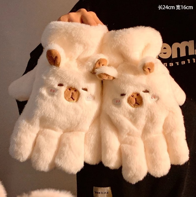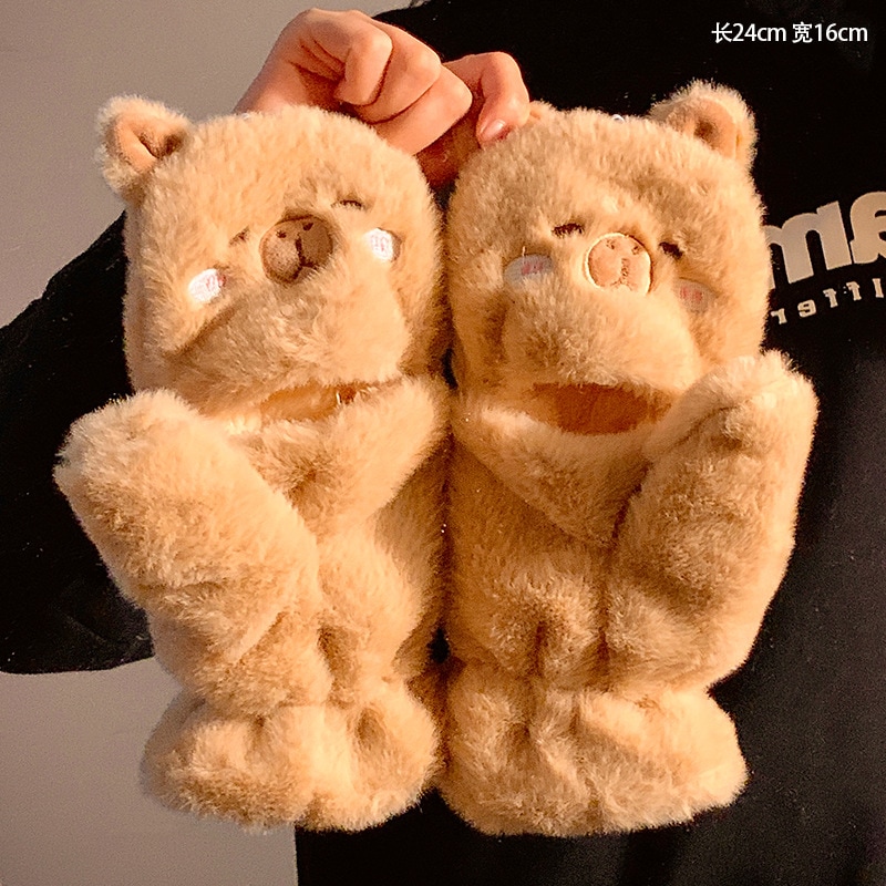 手袋 ぬいぐるみ手袋女性冬暖かい学生サイクリング防寒 ニット手袋