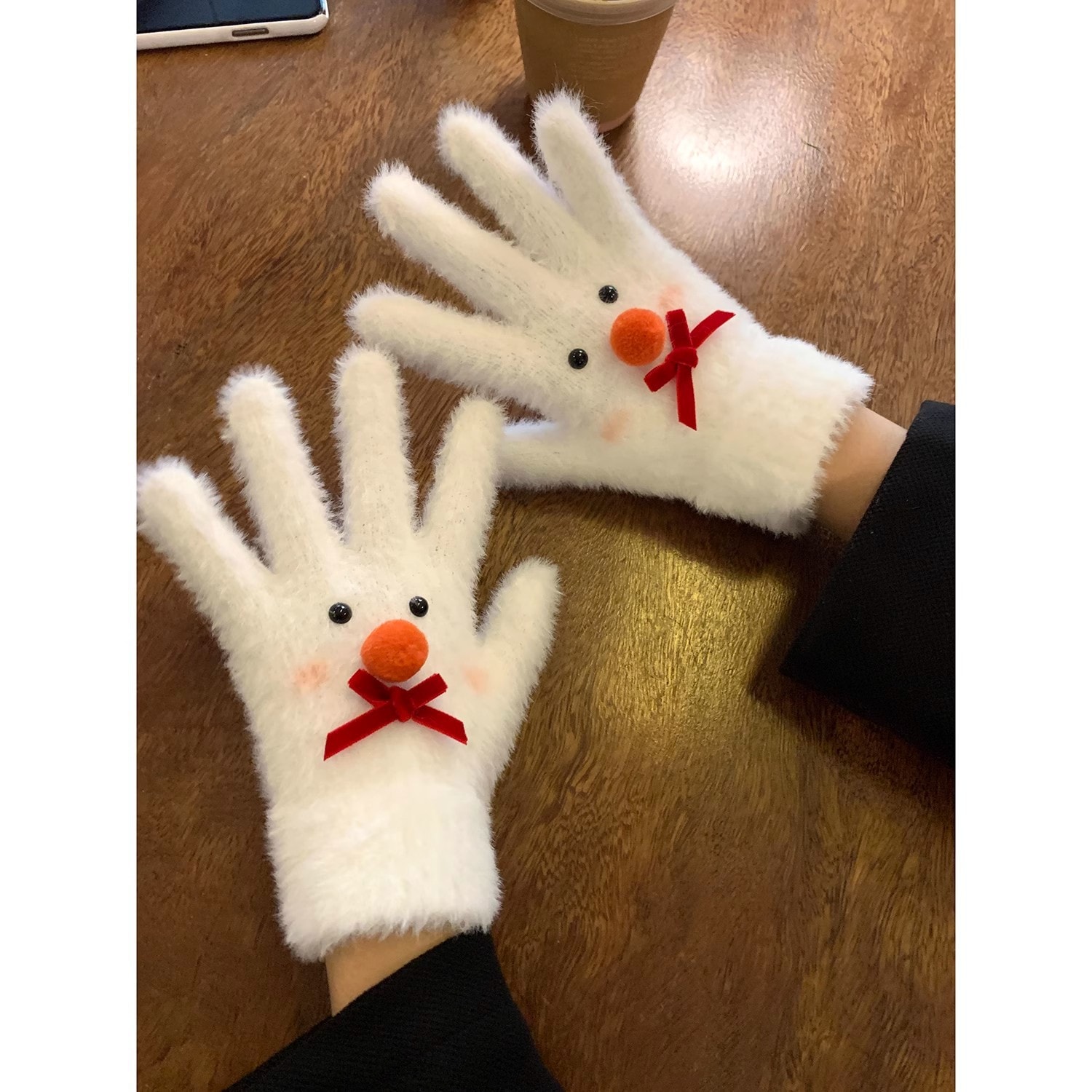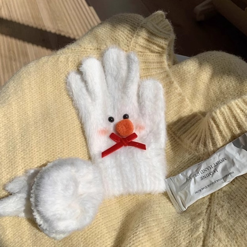 手袋 ぬいぐるみ手袋女性暖かい弓スプリットフィンガー手袋 ニット手袋