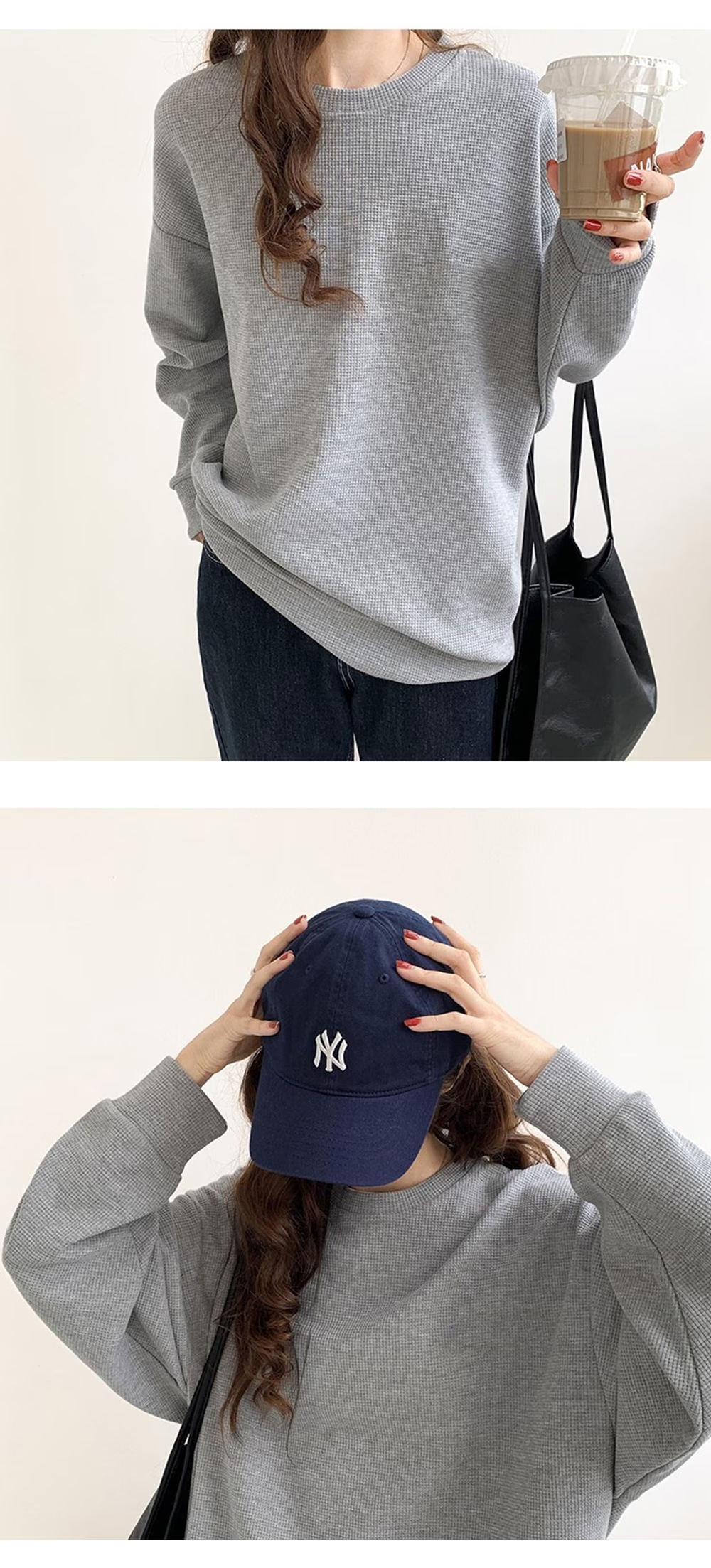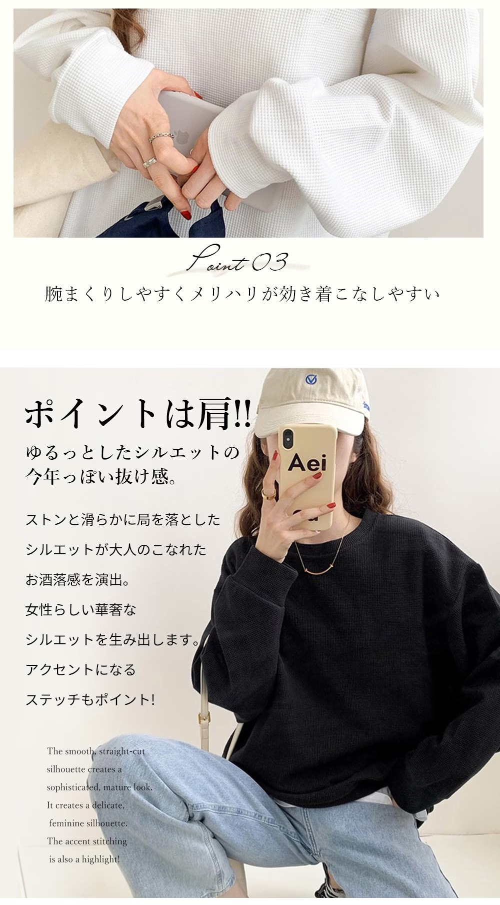ワッフル生地トップス長袖 メロウラウンドネック 長袖 メロウ フリル ボーダー ニット トップス カットソー ツートーン メロー おしゃれ 無地 かわいい シン