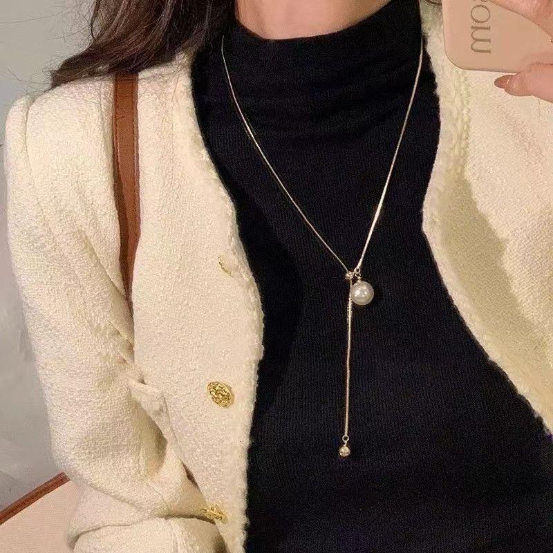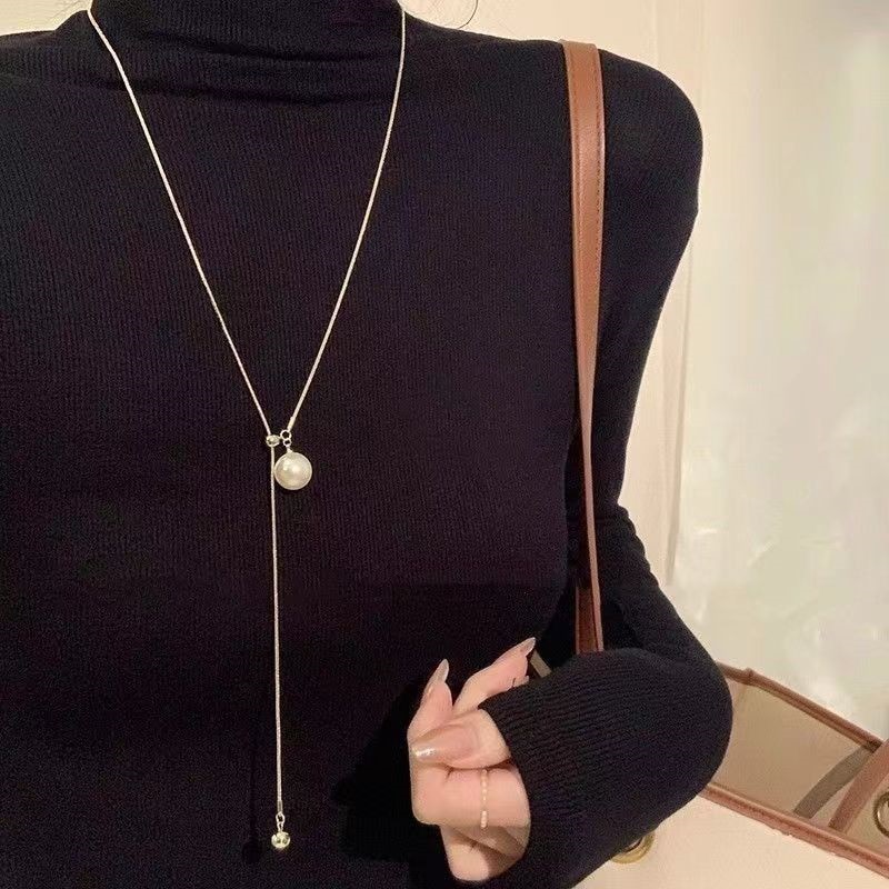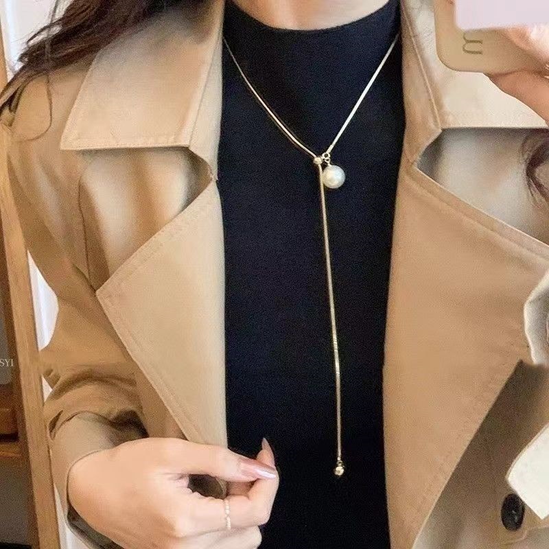 2024新型爆金真珠ネックレス女性ロング毛糸チェーン大気高級感首筋アクセサリー鎖骨チェーン女性 ネックレス