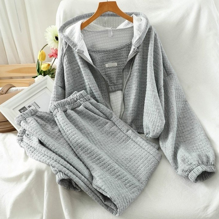 スウェット スウェットセットアップ 3点セット 黒 白 グレー 韓国 レディース オルチャン フーディー インナー ブラトップ 3点セット ワイドパンツ 上下セット フード スリーピース