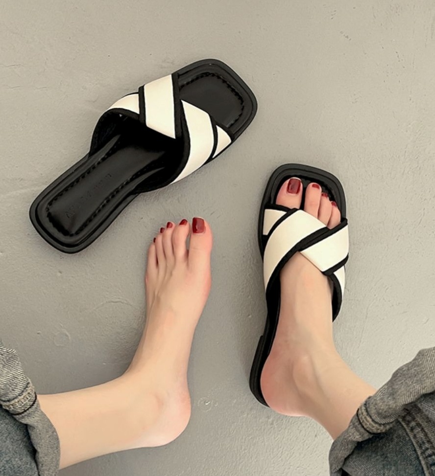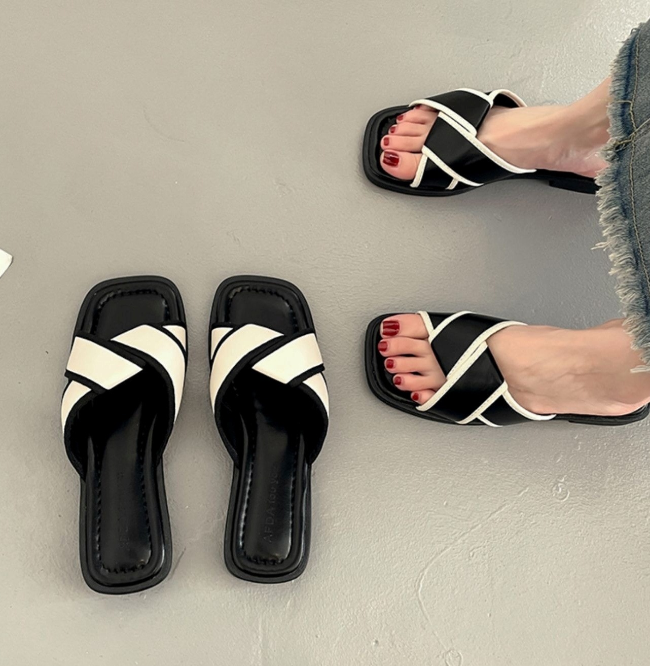 サンダル ぺたんこサンダル ローヒール ブラック ホワイト 韓国 レディース オルチャン フラット 黒 白 フラットソール 歩きやすい ボーイッシュ 2cmヒール 22.5cm