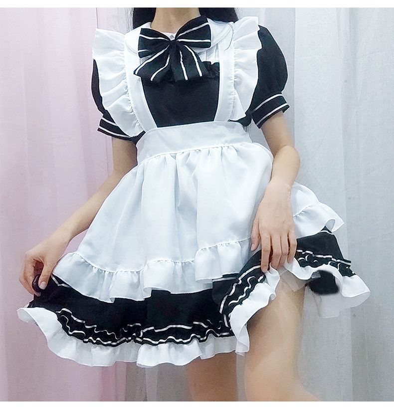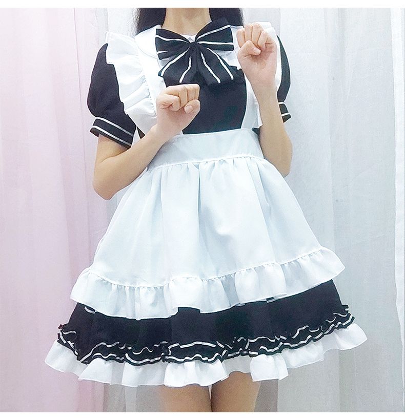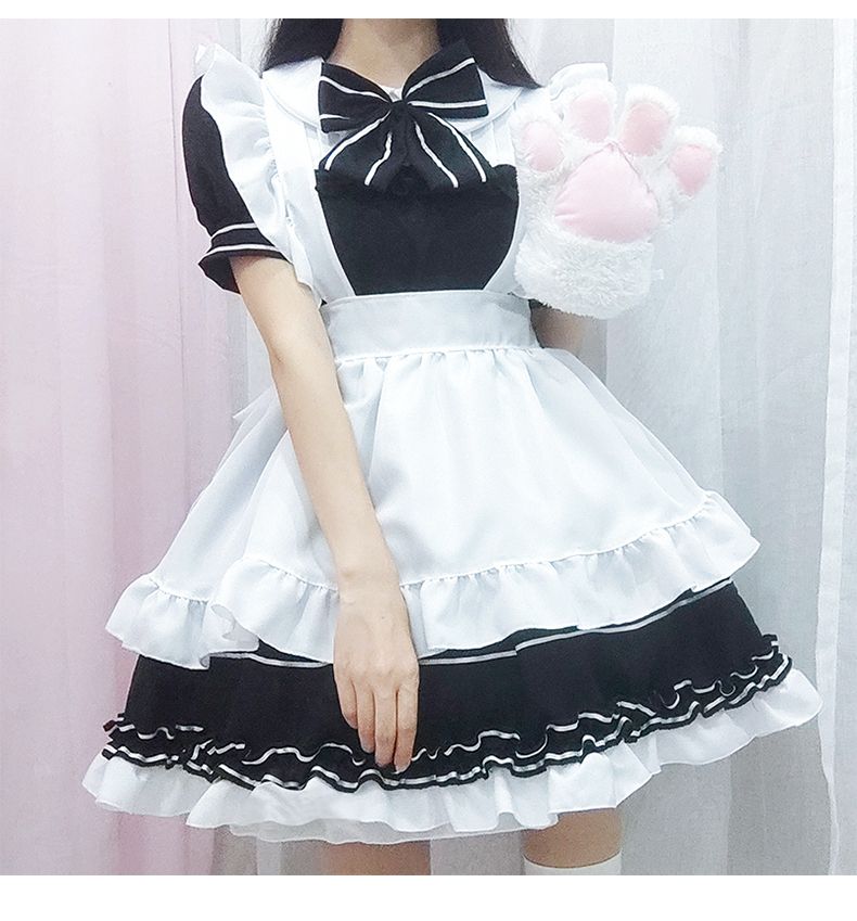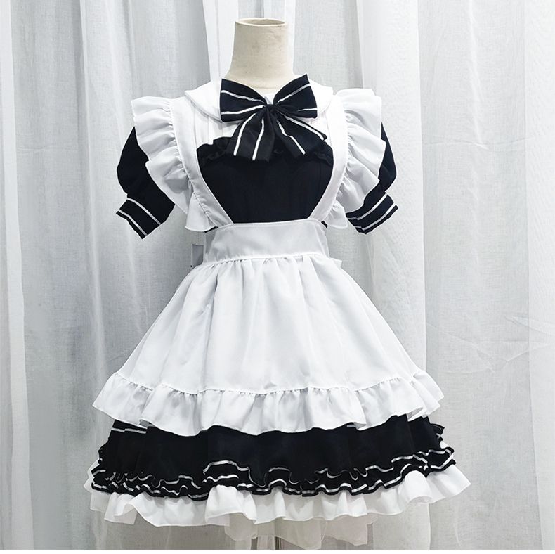 ロリータ コスプレ 新作 夏 ロリータ ワンピース 可愛い 4点セット+ OLの黒ストッキングで足 メイド服サンタコスプレ コスチューム