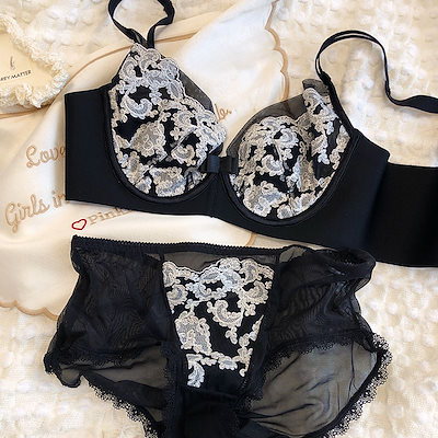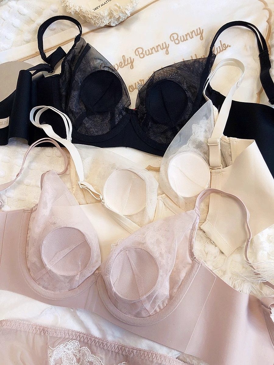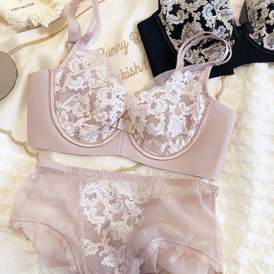 シームレスブラ セクシー 刺繍 レース 大きな胸が小さく見える ギャザー 調節ブラセット ノンワイヤーブラ
