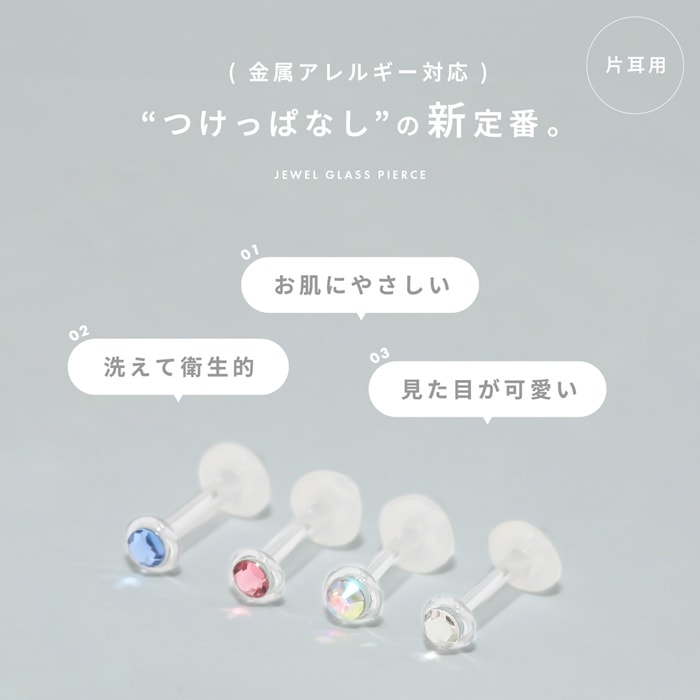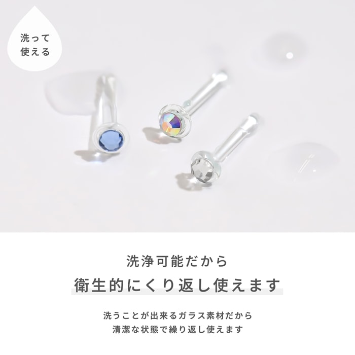RIN 軟骨ピアス 14G 透明ピアス 16G ボディピアス 18G ガラスピアス さりげない 小ぶり ストーン ストレートバーベル ゲージ ピアス サージカルステンレス 片耳用