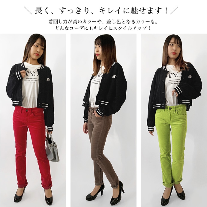 スキニー カラーパンツ アンクルパンツ ボトムス ストレッチ 細身 股上浅め 小さいサイズ 美脚 脚長 コーデュロイ 保温 Sweet Camel スイートキャメル レディース
