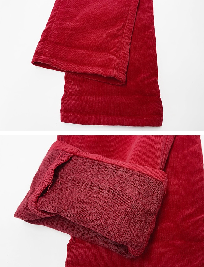 細畝のストレッチコーデュロイを使用したスキニーストレート。