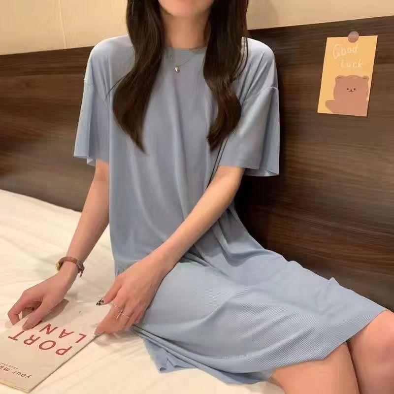 人気商品超目玉 ルームウェア 半袖 部屋着 ワンピース ボーダー マタニティレディース 透けない パジャマ 体型カバー ネグリジェ ゆったり 薄手 涼しい 大きいサイ