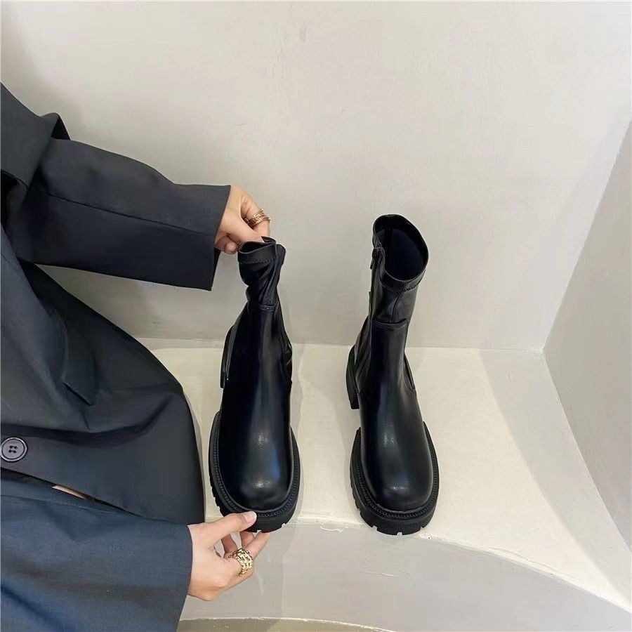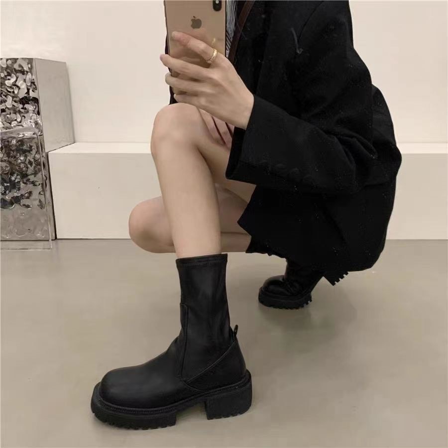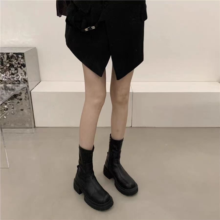 秋 イギリス風 ショートブーツ やせて見える クール ブーツ足 ショート ミドルブーツ