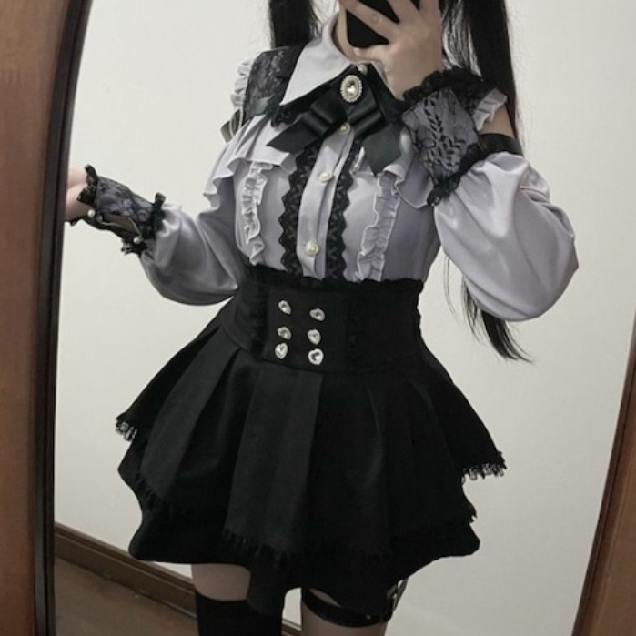 全4カラーオフショルレースブラウス&ミニスカートセット ワンピース