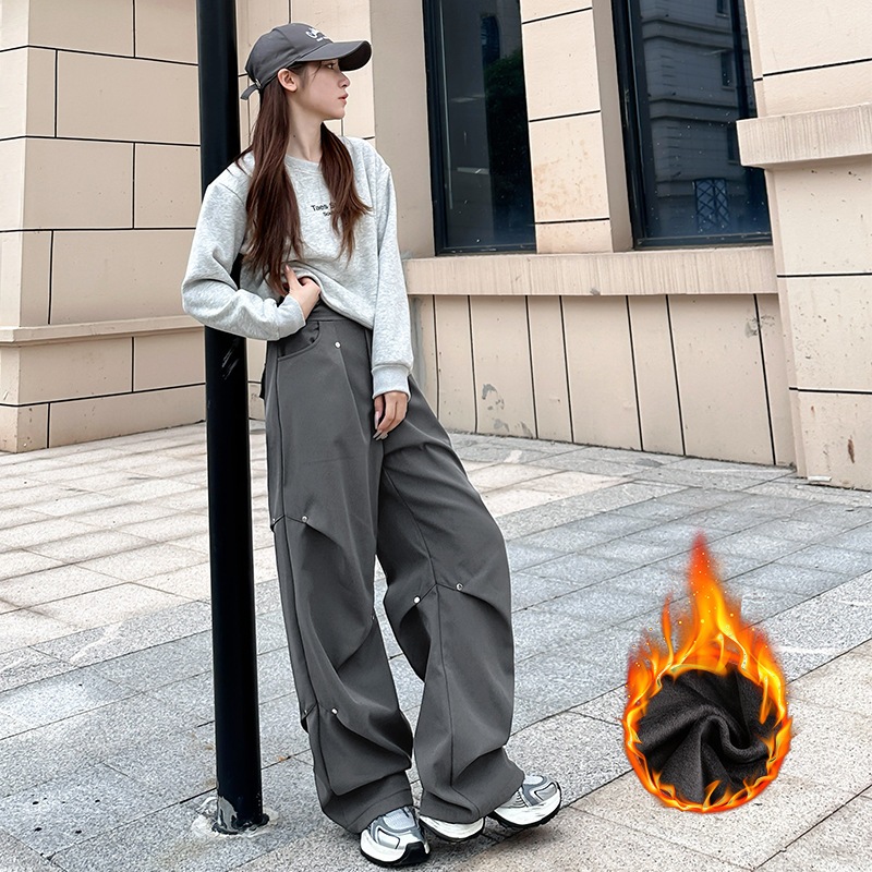 春 ロングパンツ レディース ノーマルタイプ 裏起毛 パンツ カーゴパンツ ワイドパンツ 体型カバー 着痩せ ゆったり 韓国ファッション ロングパンツ