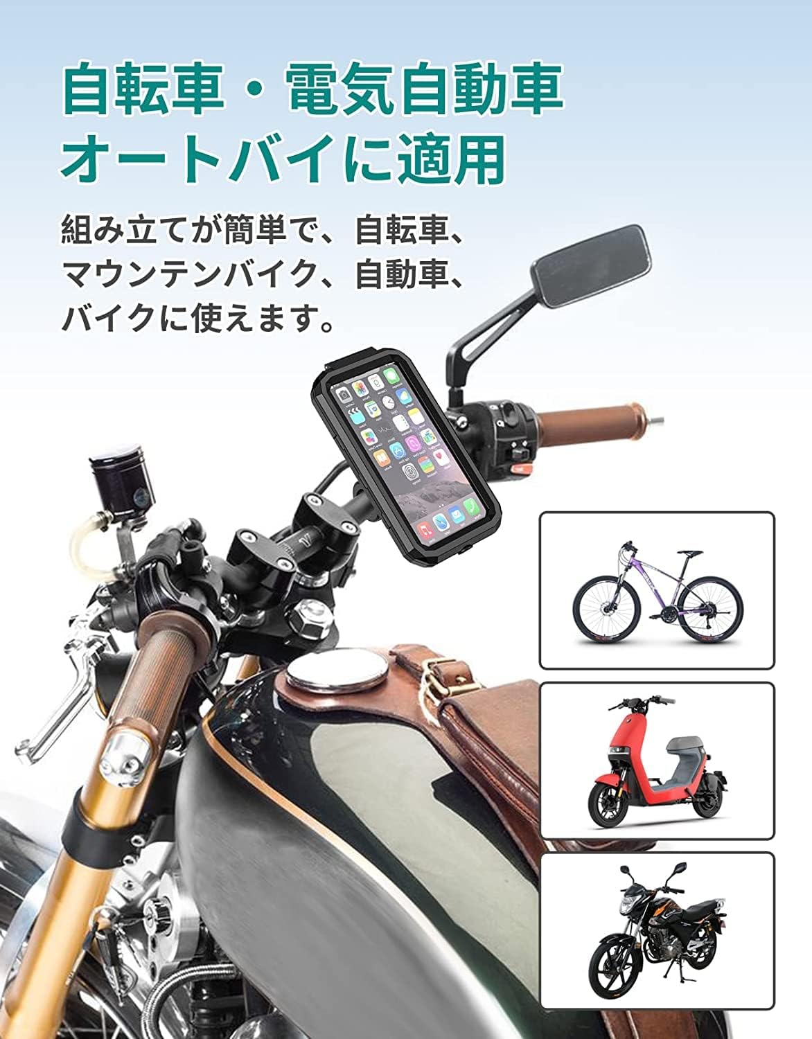 自転車 スマホ ホルダー 防水 バイク スマートフォンバイク用 携帯ホルダー 自転車用 バイク用 スマホホルダー 超高感度スクリーン GPSナビ 360度回転 高安定性 強力固定 脱落防止 簡単取付