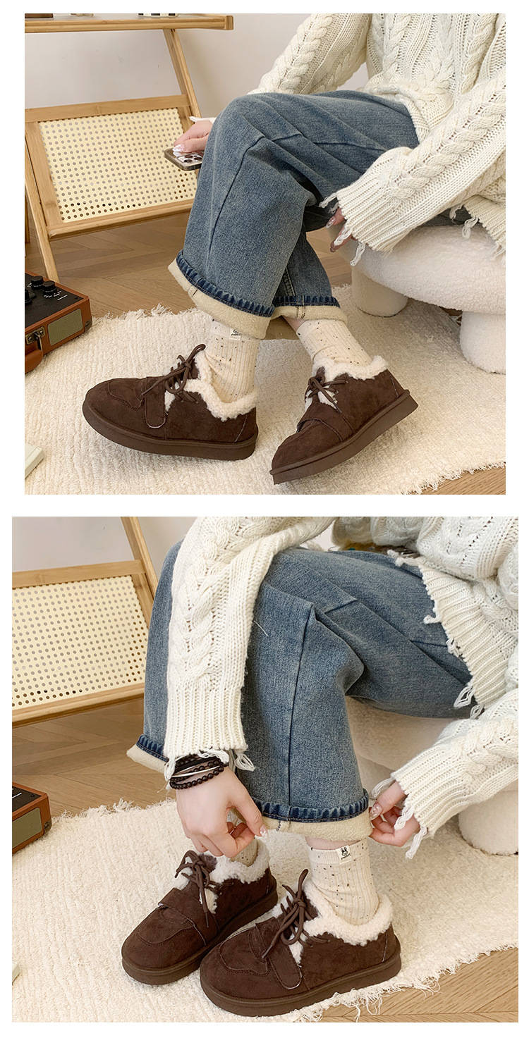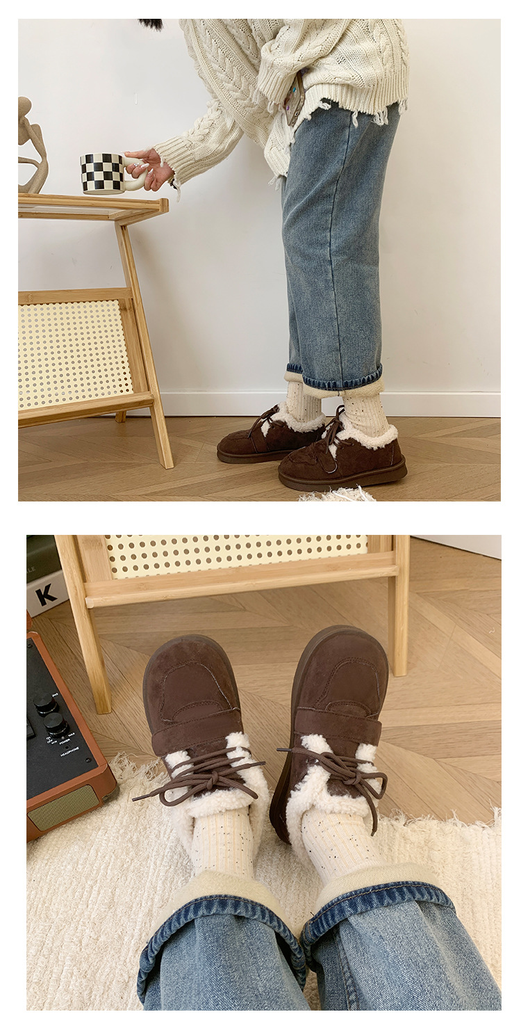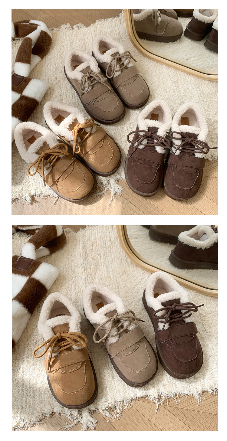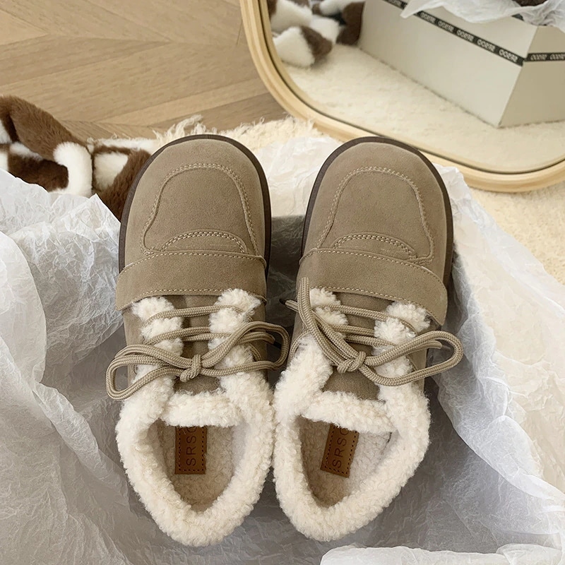 韓国ファッション レディース モカシン 暖かい百掛けカジュアル靴 ブラッシュド レザー コットン シューズ モカシン