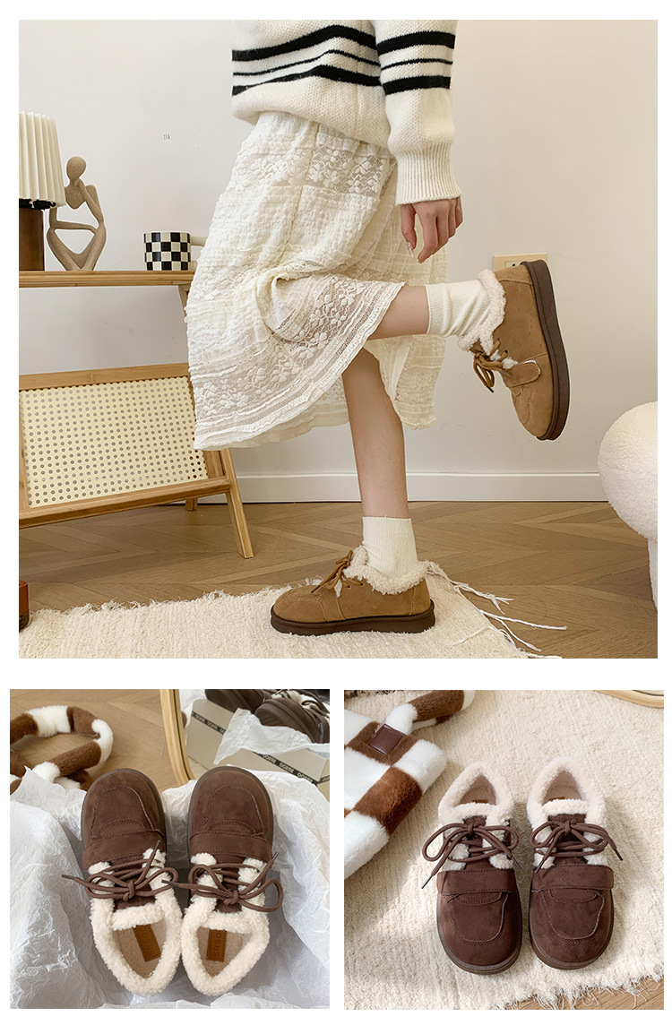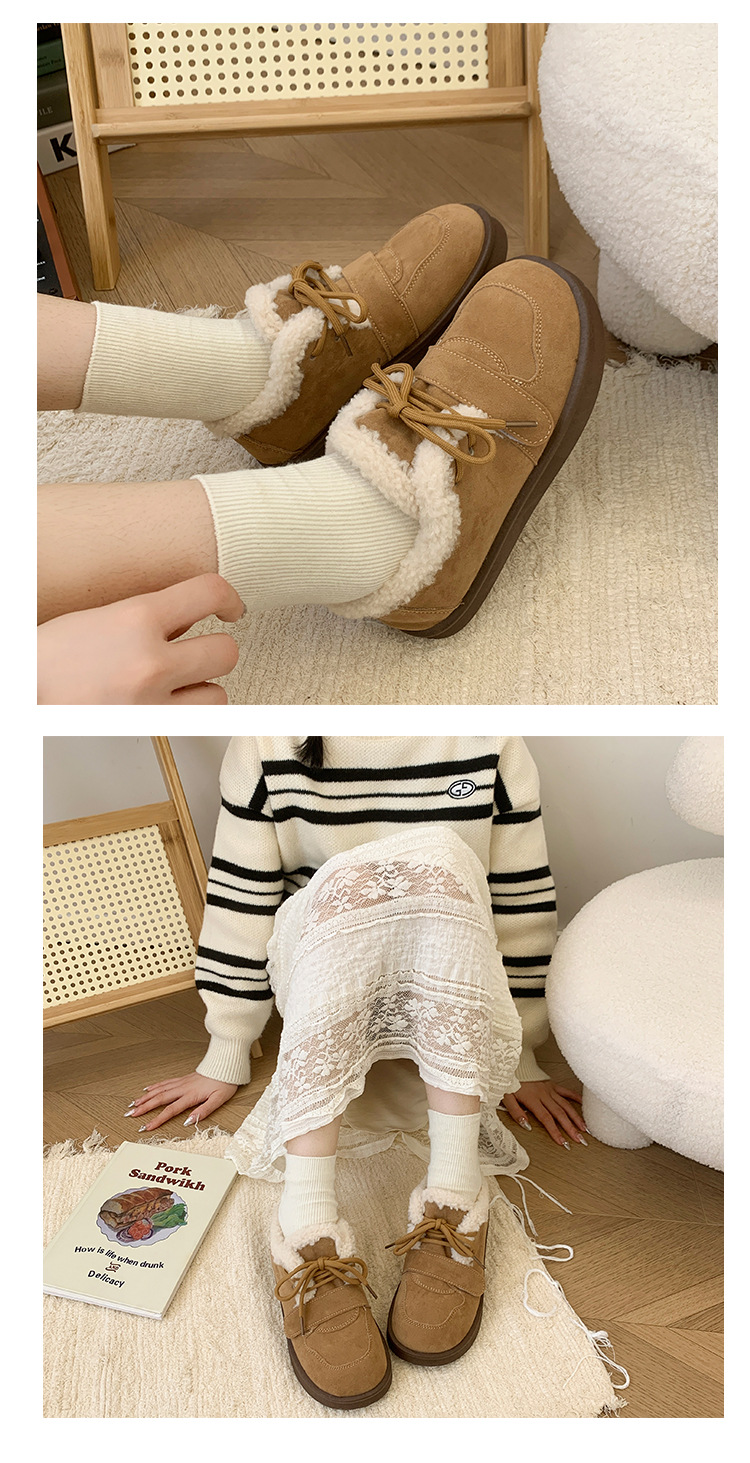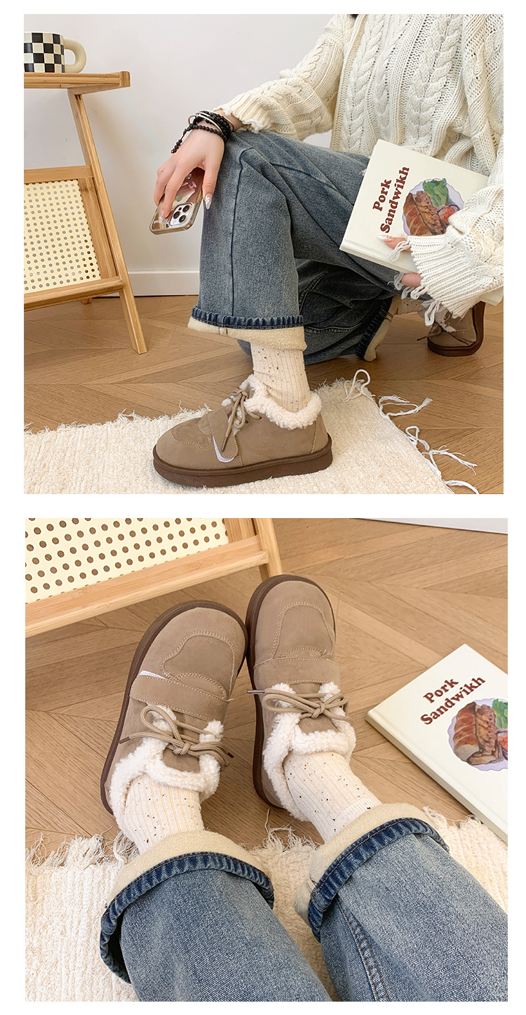 韓国ファッション レディース モカシン 暖かい百掛けカジュアル靴 ブラッシュド レザー コットン シューズ モカシン
