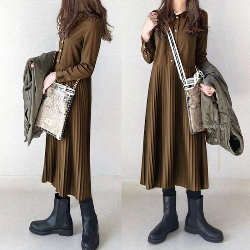 冬新作 シンプル 着痩せ ワンピース ロングワンピース 長袖ワンピース 体型カバー 20代 30代 40代 50代