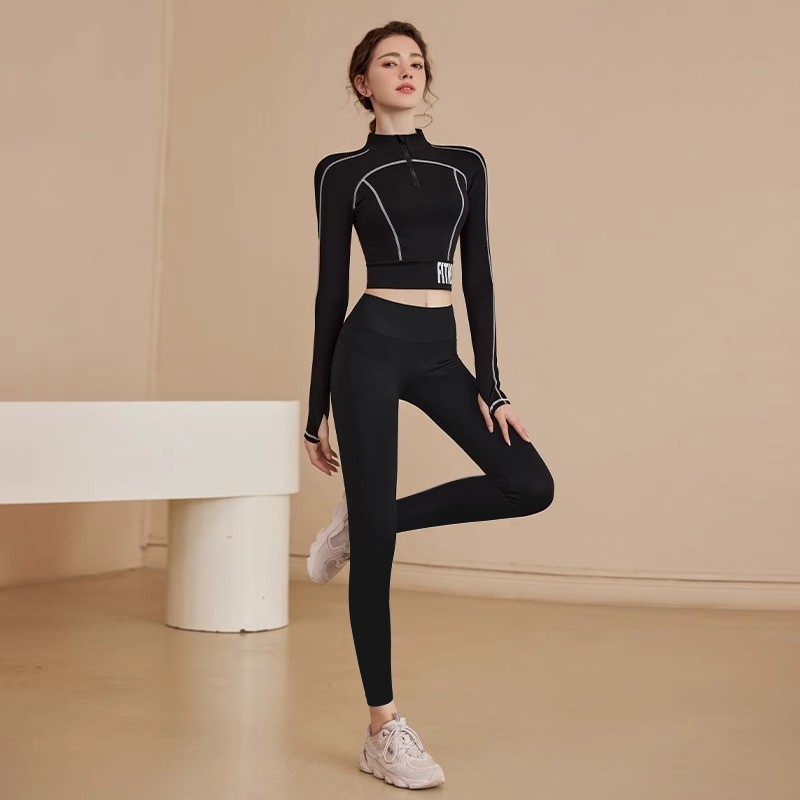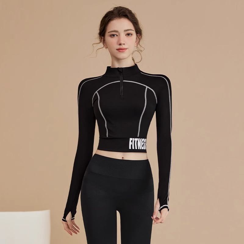 ヨガウェアスポーツスーツフィットネストップス長袖トレーニングウェア レディーススポーツウェア