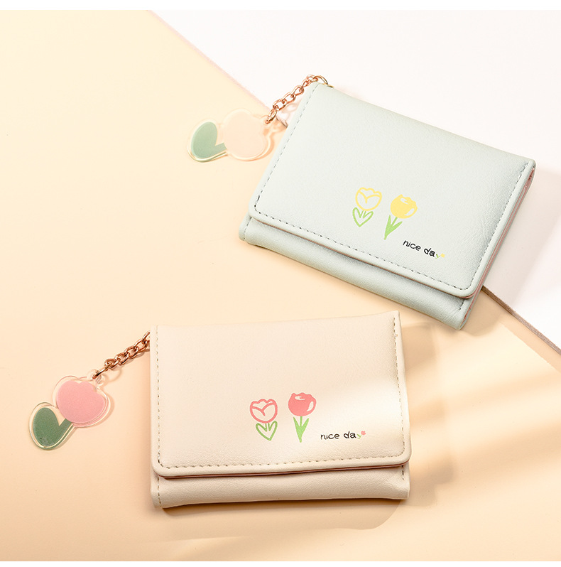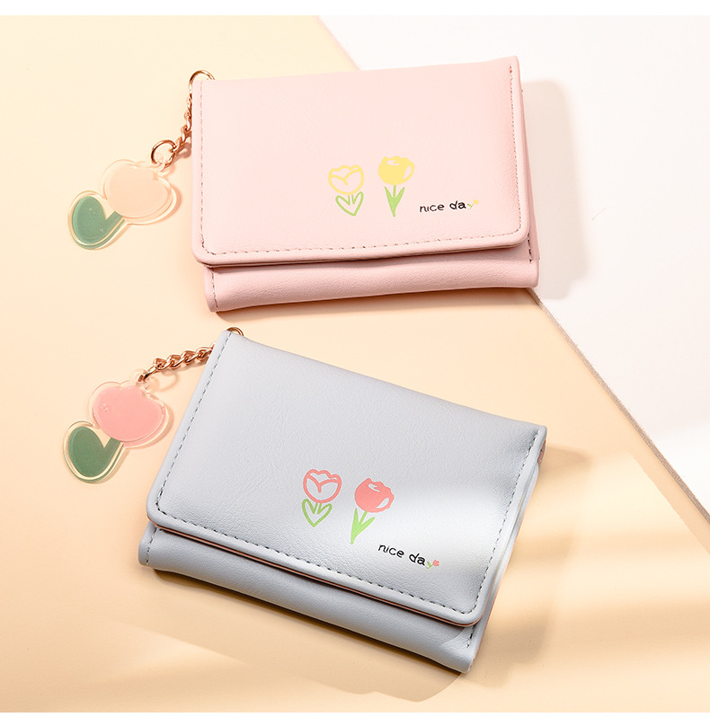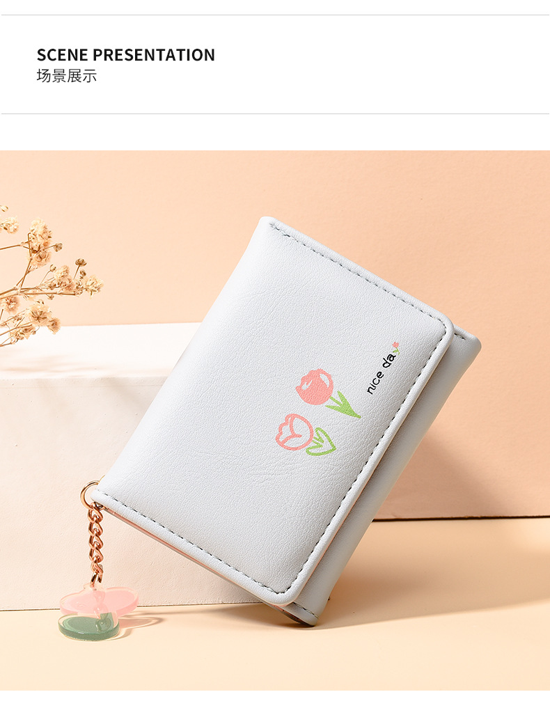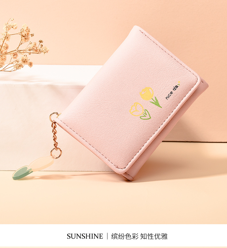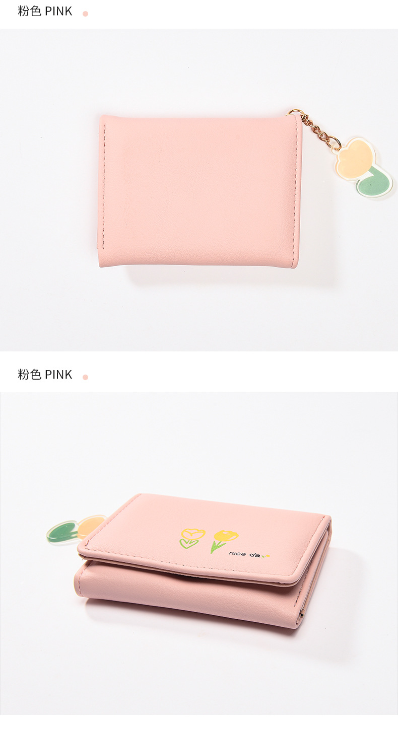 2025新調したい財布 短い三つ折りの純色シンプルなプリントがかわいい清新な学生の折りたたみ財布バッグ コンパクトミニ財布 ニ財布 レディース 小銭入れ二つ折り財布財布大容量