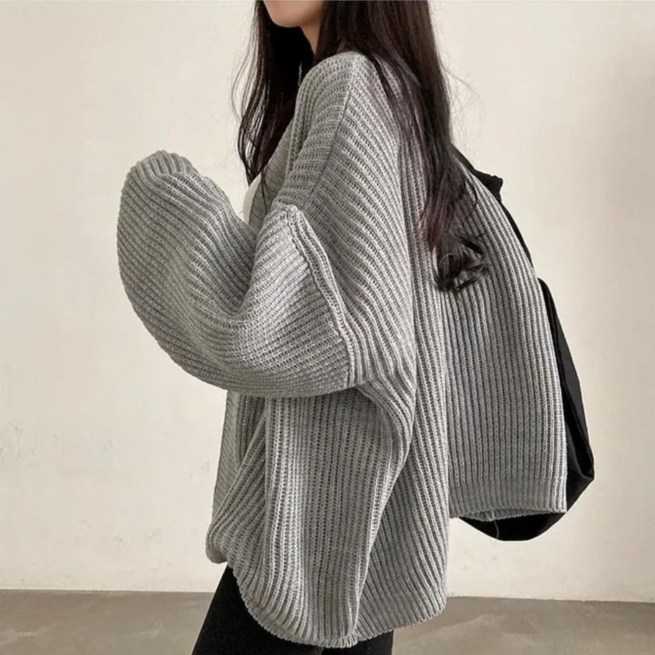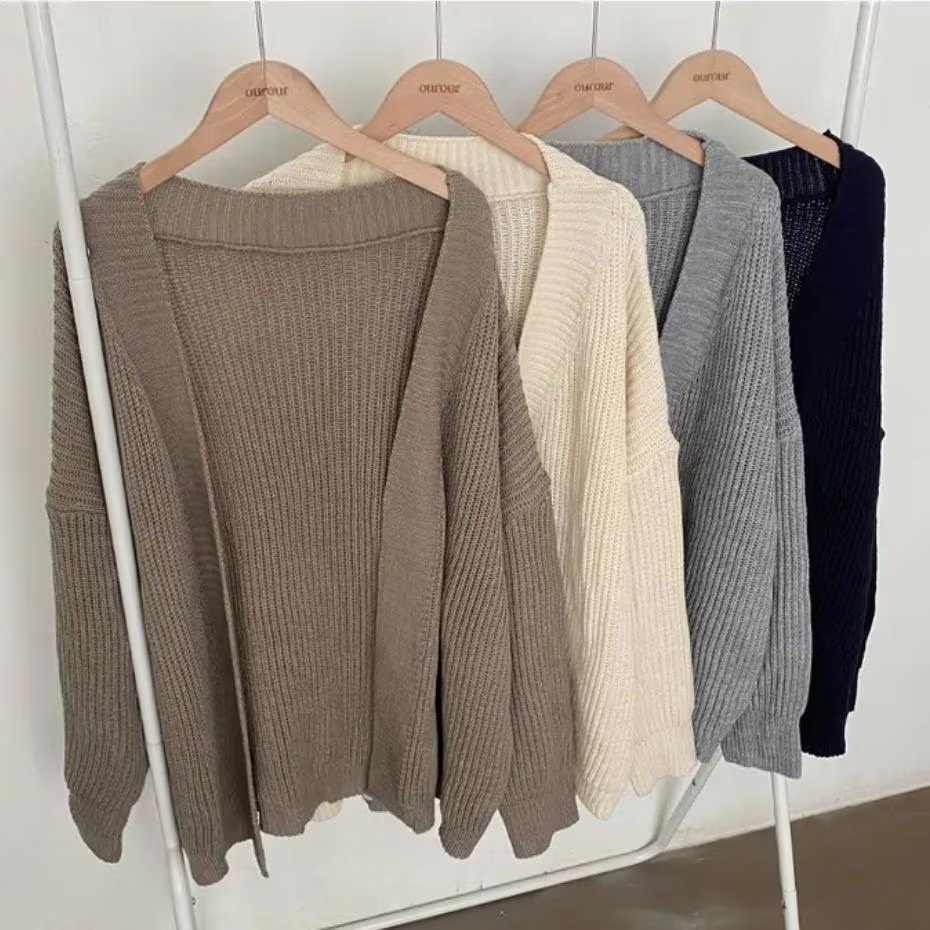 日韓国ファッション chicゆったり 怠惰な風 セミロングニットカーディガン レディース 無地百掛けカジュアル軽薄 カーディガン 大きいサイズ体型カバー ニットセーター 着痩せ 秋冬アウター カーディ
