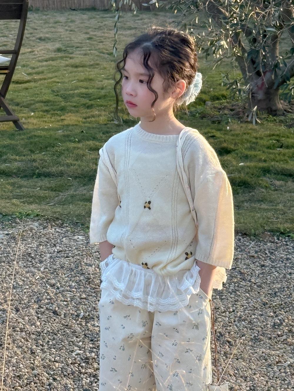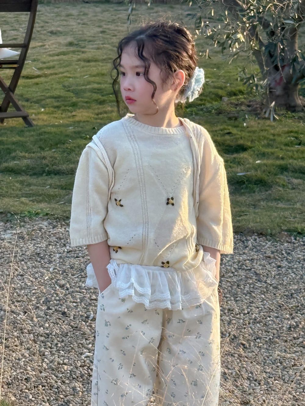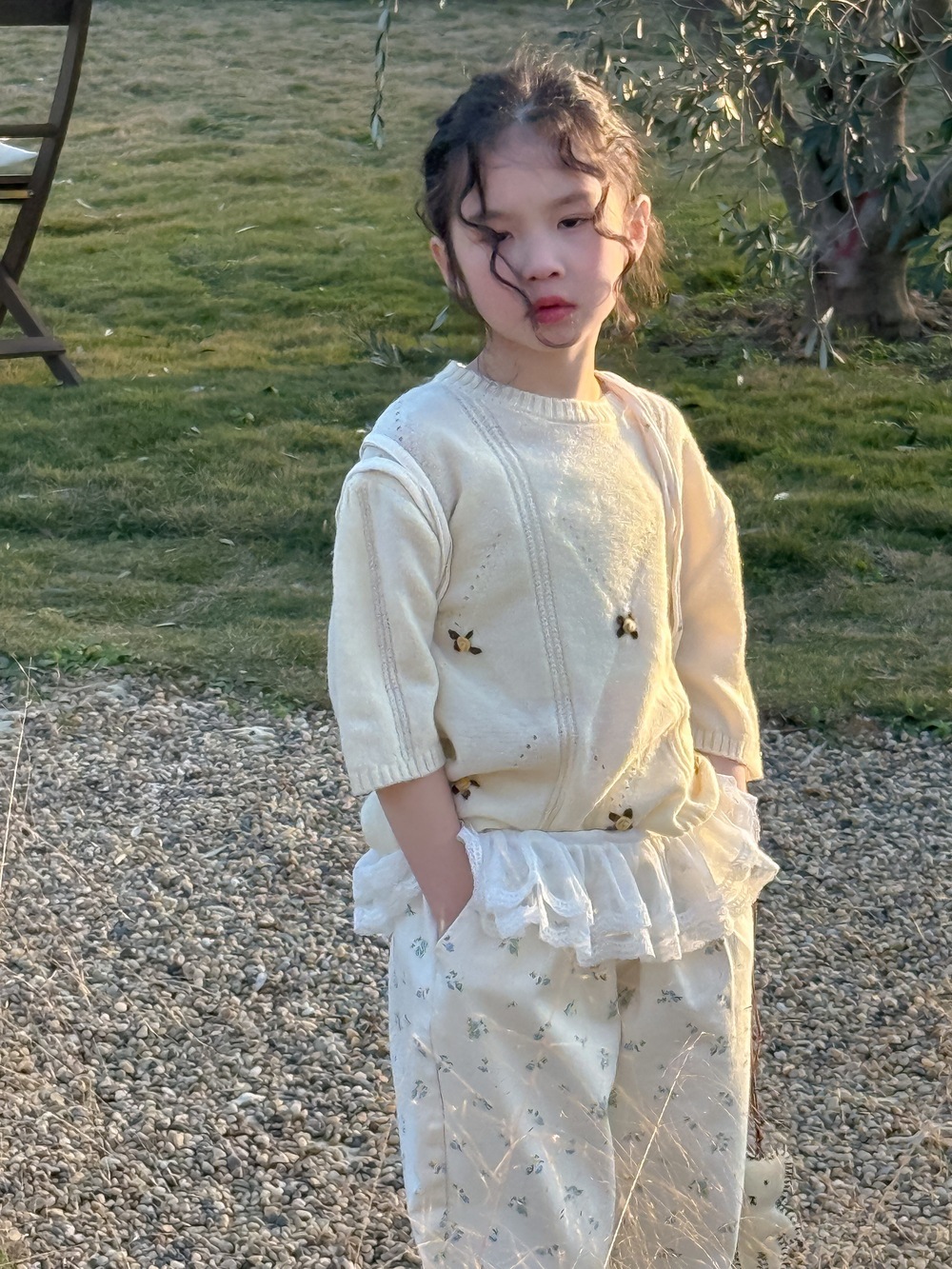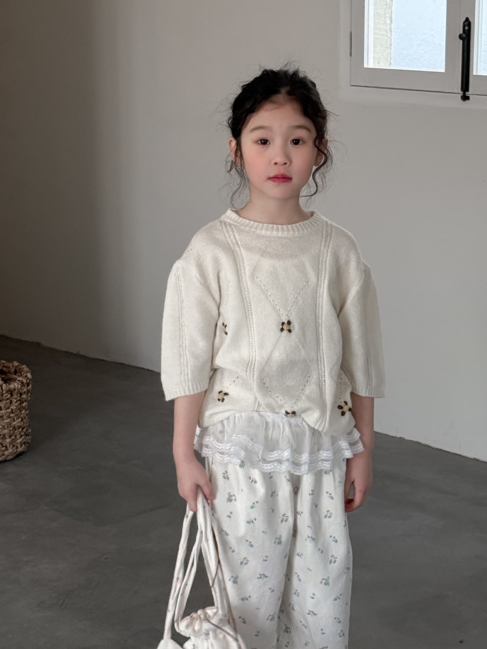子供用セーター2025春モデル女の子用韓国版七分袖ニット上着子供丸首カバーゆったり毛糸コート Tシャツ ブラウス