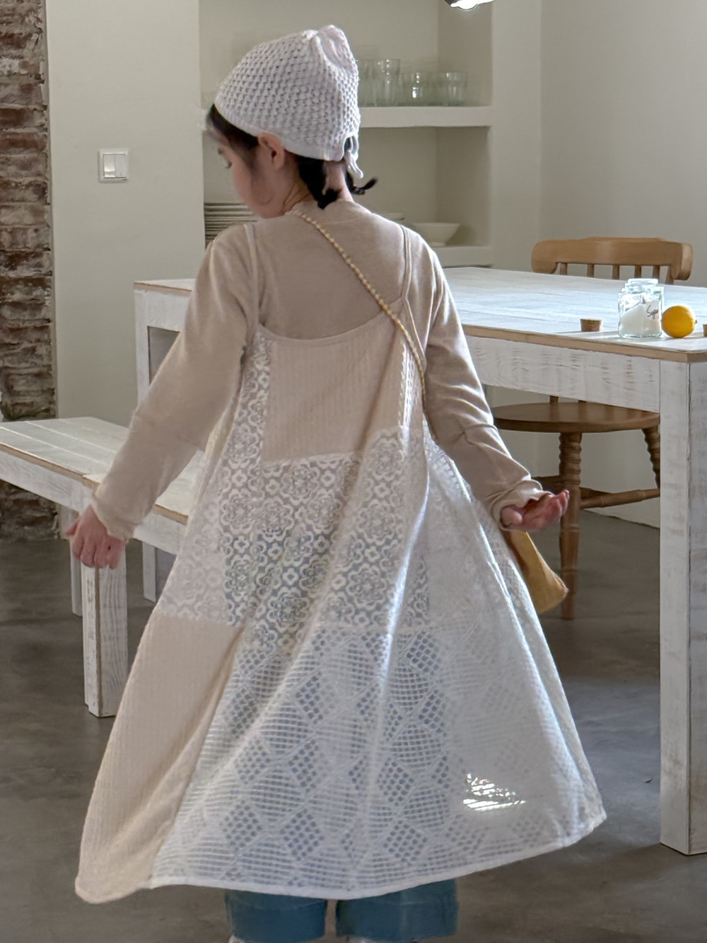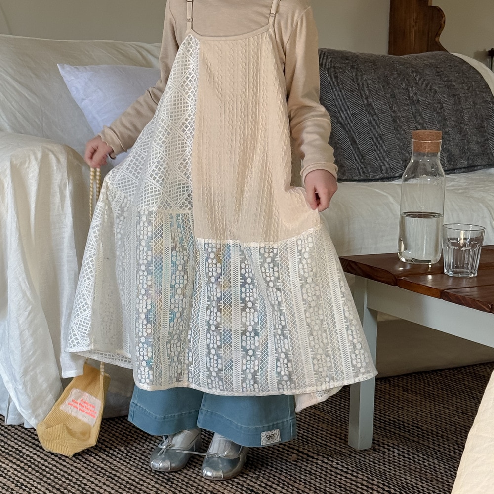 子供スカート2025春モデル女性の赤ちゃんの韓国版透かし継ぎ目スクリーンスカート子供の長い透視チョッキキャミソールスカート ワンピース ドレス