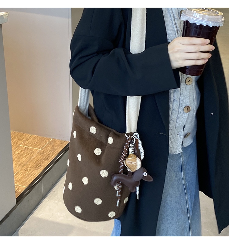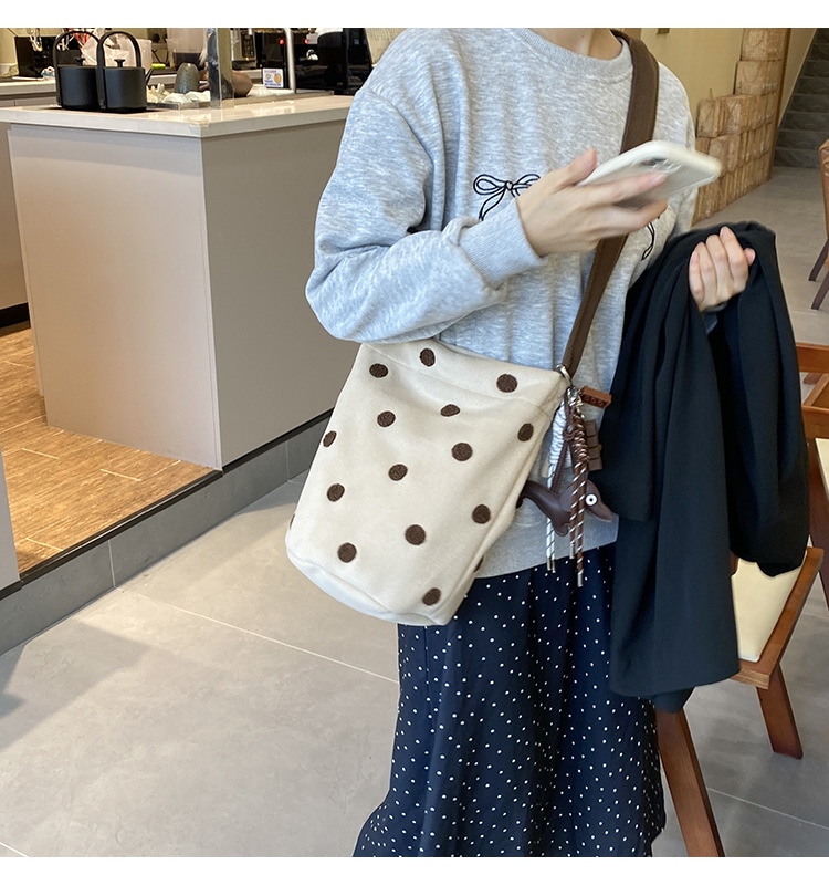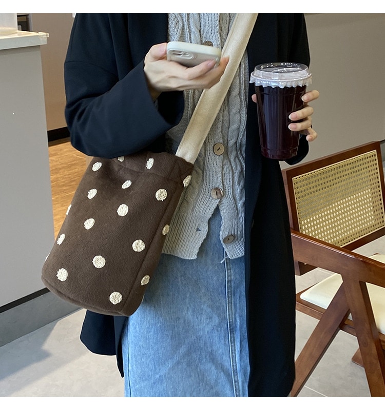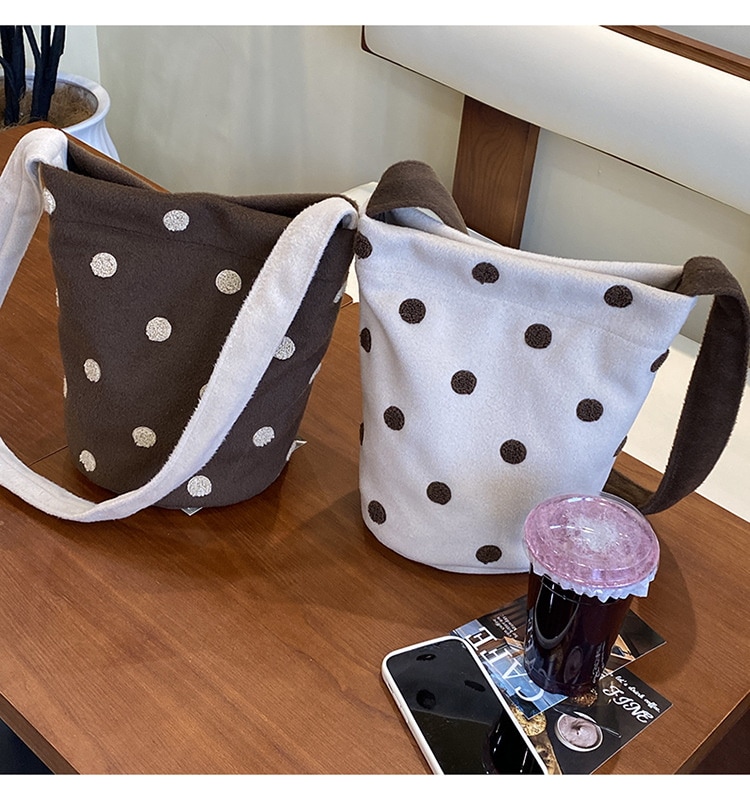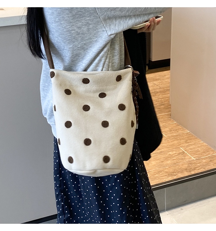 新型かわいい小衆波点バケツバッグ百合女性シングルバッグ大容量外出出勤斜め掛けスニーカーバッグ トートバッグ