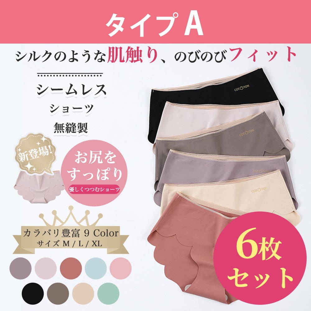 6枚入り シームレス ショーツ レディース ショーツ ショーツ セット 6枚セット 無縫製 下着 パンツ ストレスゼロ 肌着 響かない 伸縮性 圧迫感ない
