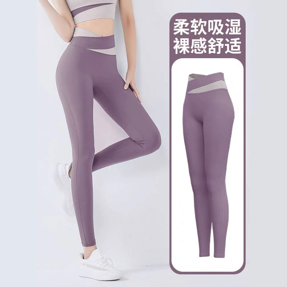 スポーツヨガスーツヨガウェアセット ブラ付きハイウエストヒップアップノンマーキングヌード 桃の斜めスペルフィットネスウェアセット トレーナー