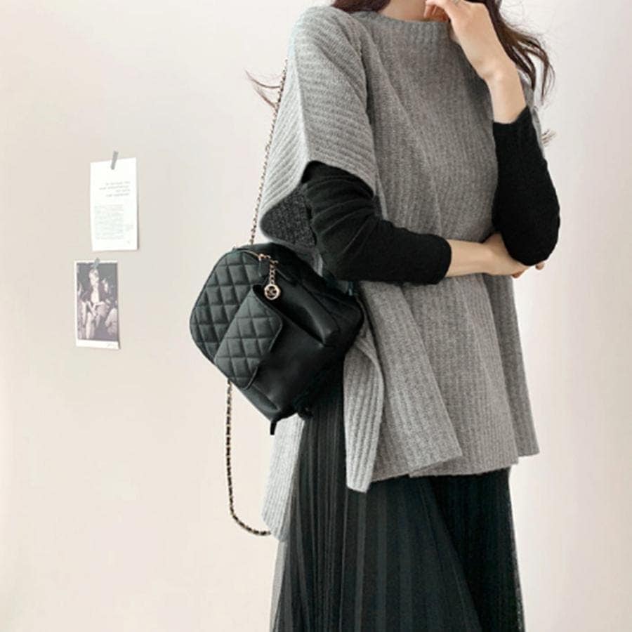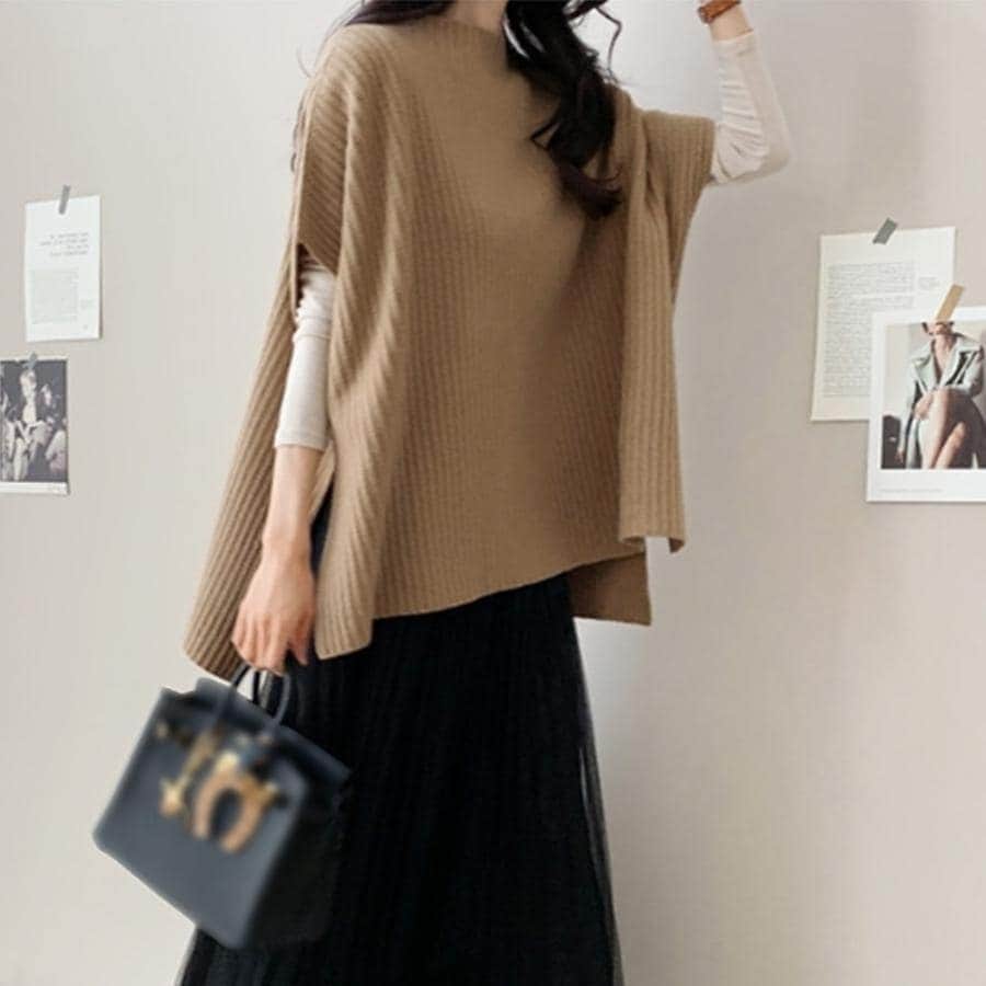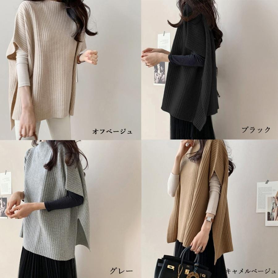 韓国ファッション 人気なリブニット ニットベスト レディース ニットチョッキ レディース 百掛け 大きいサイズ 長袖 タートルネック ベーシックニット
