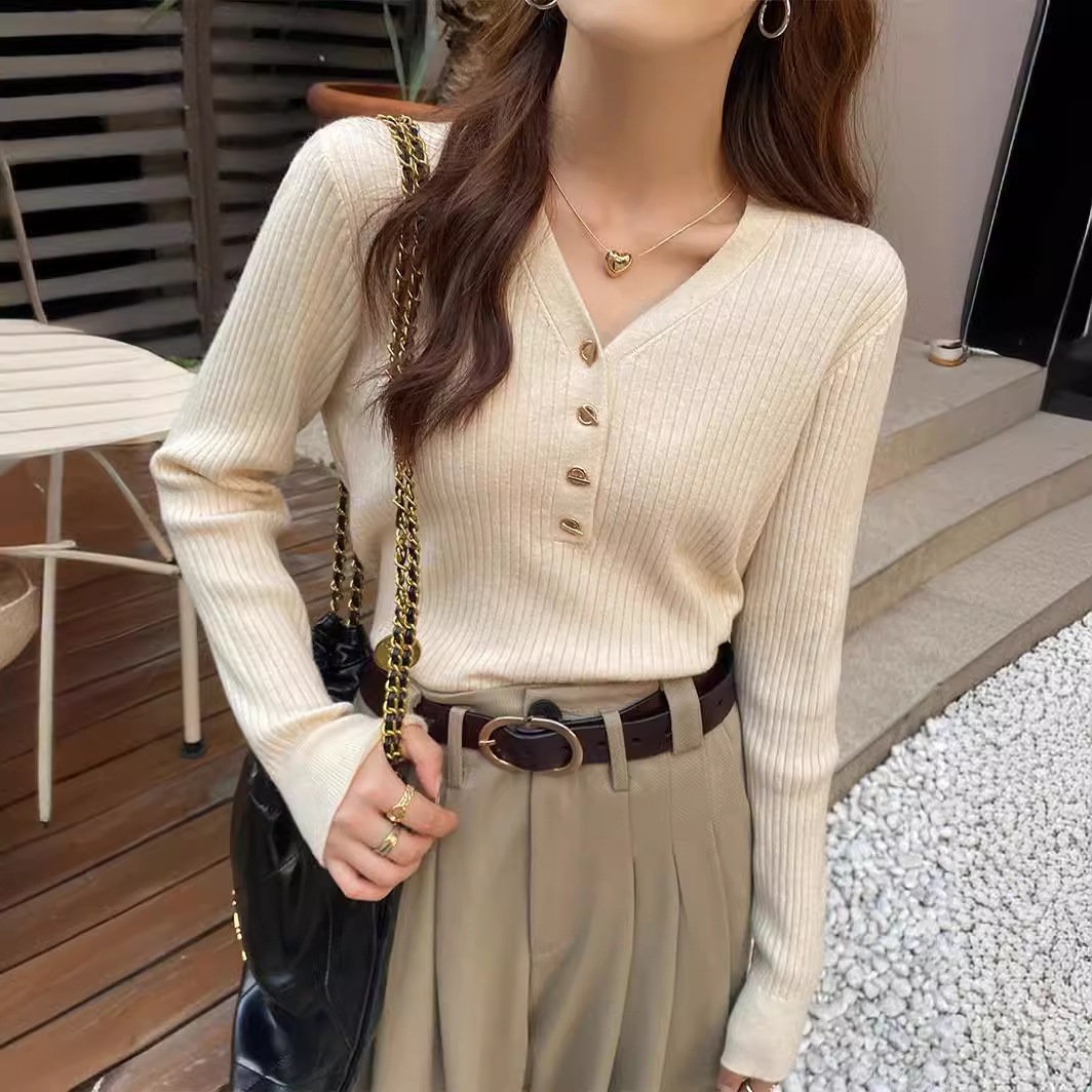 2025新作韓国ファッション春秋冬ニットTシャツ 6カラーニット レディース 無地 ニット プルオーバー リブニット トップス セーター レディース