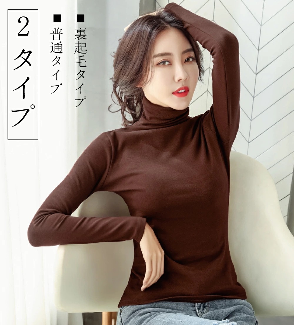 秋冬商品登場2タイプ ハイネックカットソートップス レディース タートルネック 防寒 長袖 裏起毛 タートルネックカットソー 秋冬 暖かい チュニック