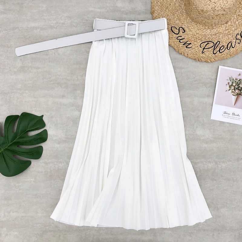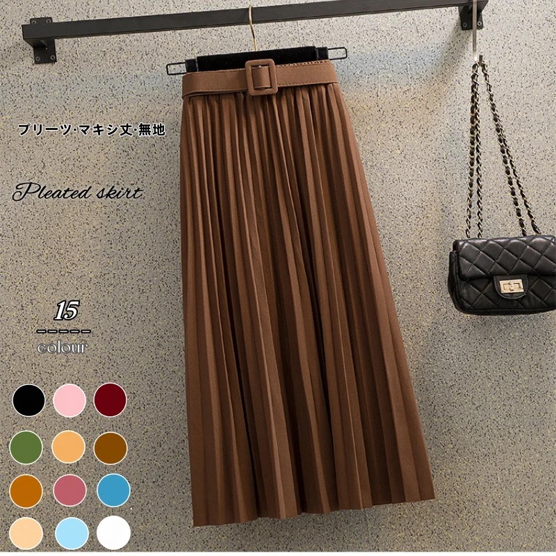 新色追加 選べる16色2024春秋夏の新作韓国版ミディアム丈半身スカート女純色プリーツスカートベルトを送って肉を隠す