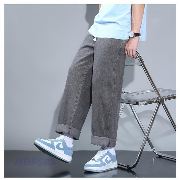 デニムパンツ メンズ ボトムス ジーンズ ジーパン 高級感 ジョガーパンツ ゆったり ワイドパンツ ロング丈 ウエストゴム 無地 オシャレ 夏物