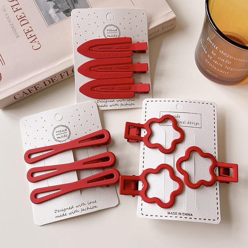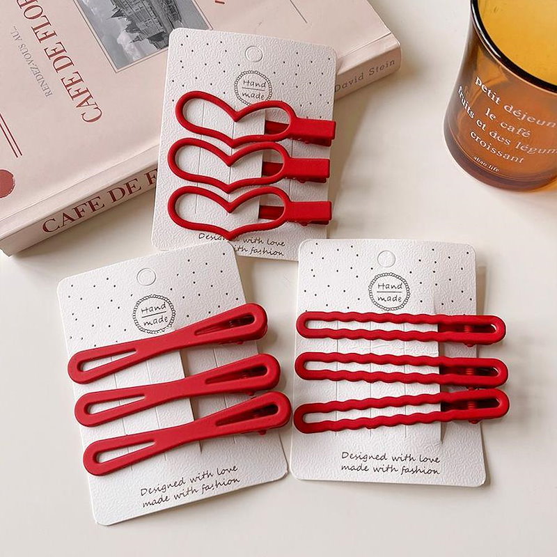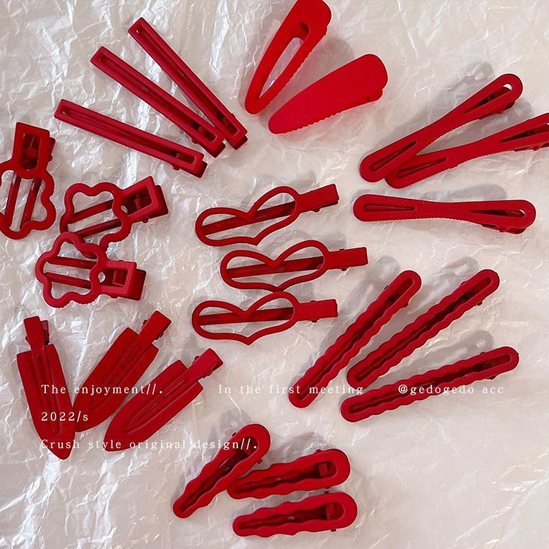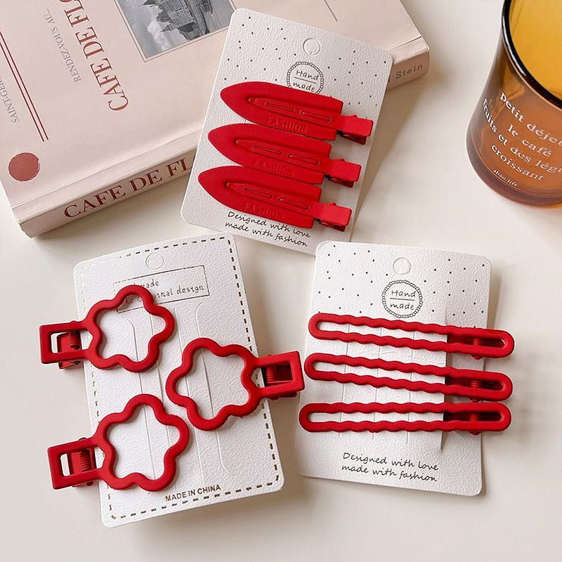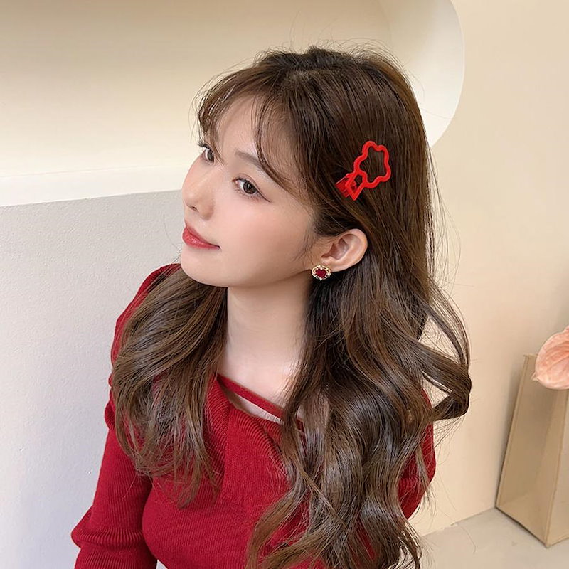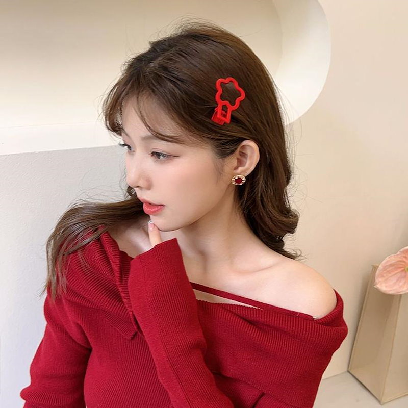 ファーウェイ クリスマスの赤いヘアピン女 前髪サイドにヘアピンを挟んだシンプルな 雰囲気 のヘアピ ヘアクリップ
