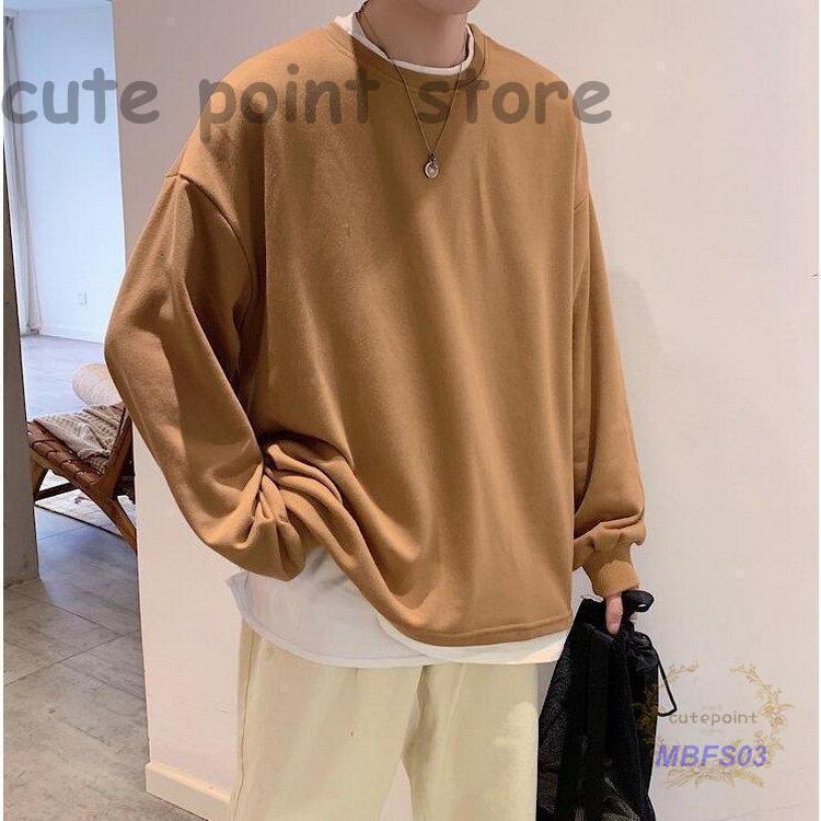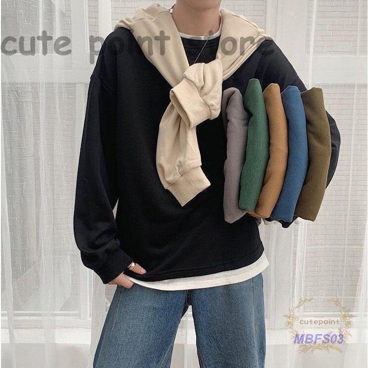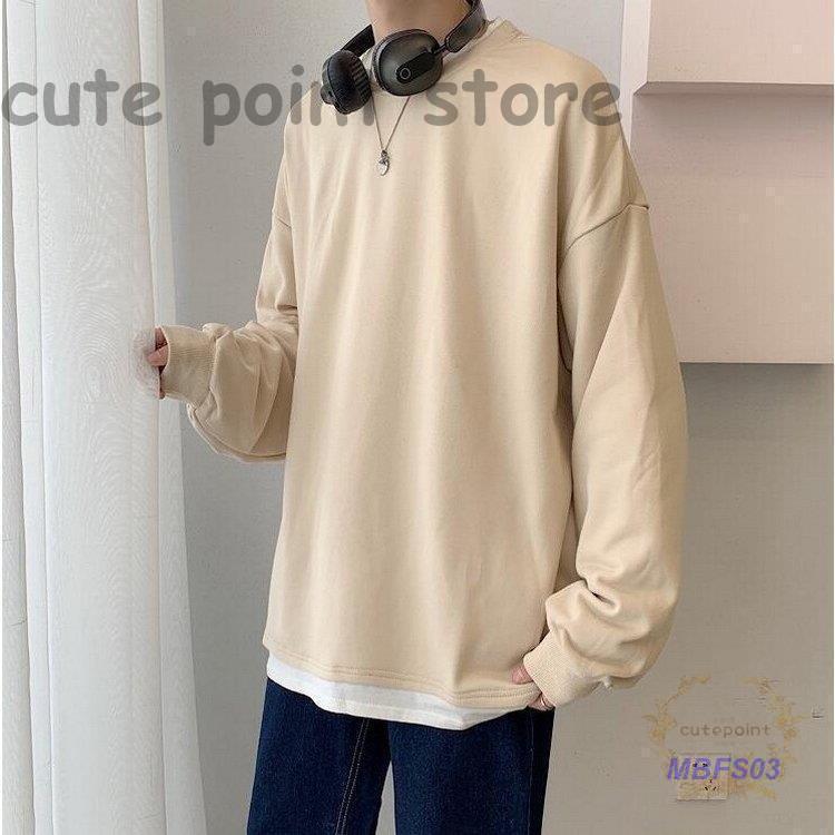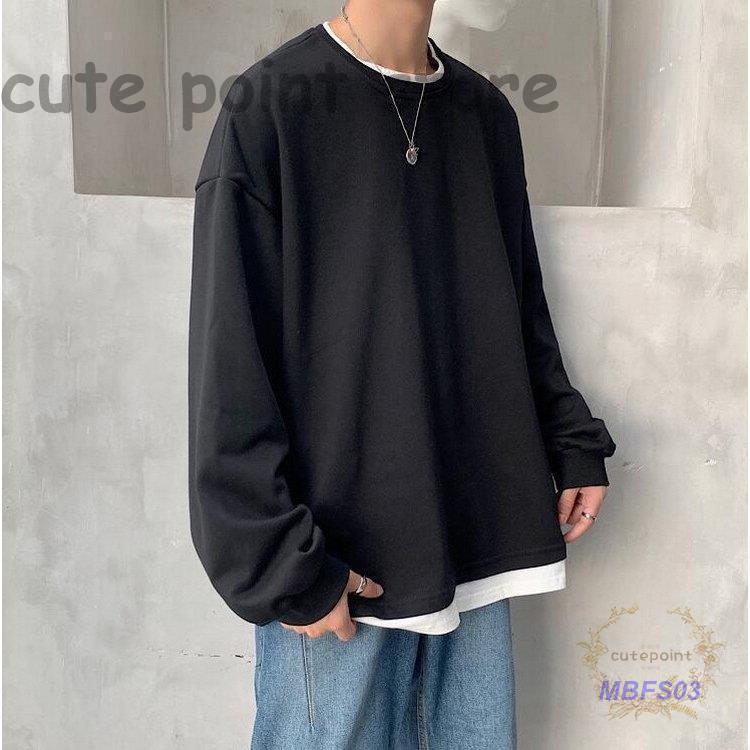 スウェットトレーナー メンズレディース 春秋 長袖Tシャツ 無地 ゆったり カップルプルオーバートレーナー フェイクレイヤード オシャレカジュアルトップス