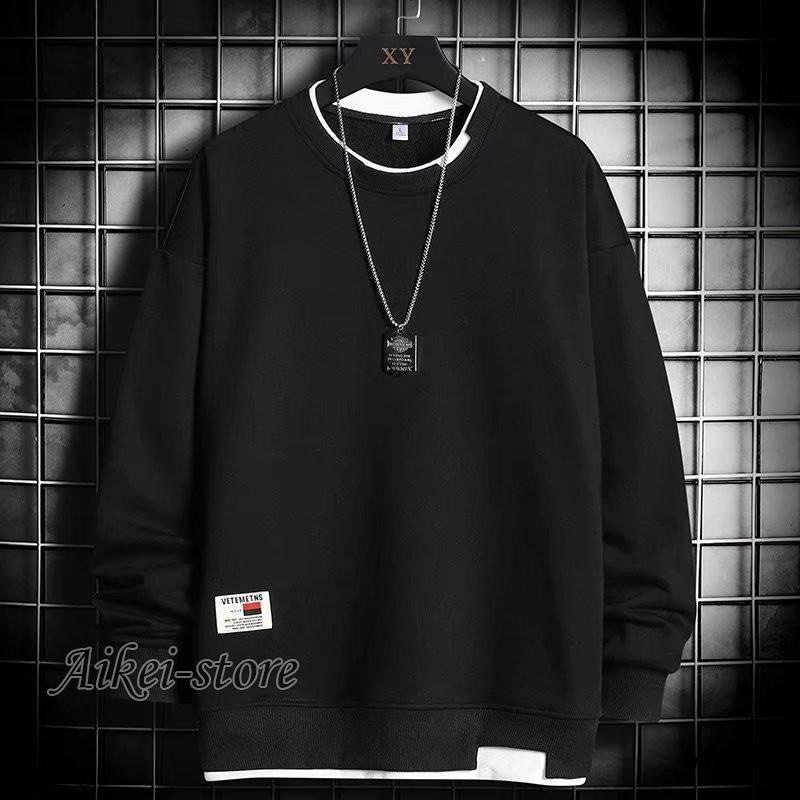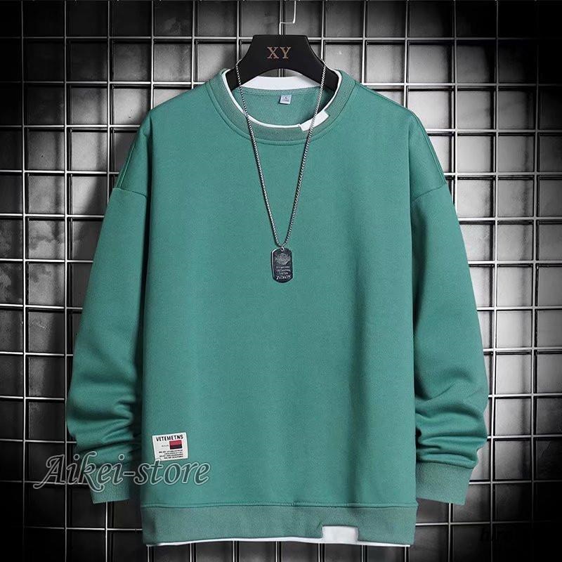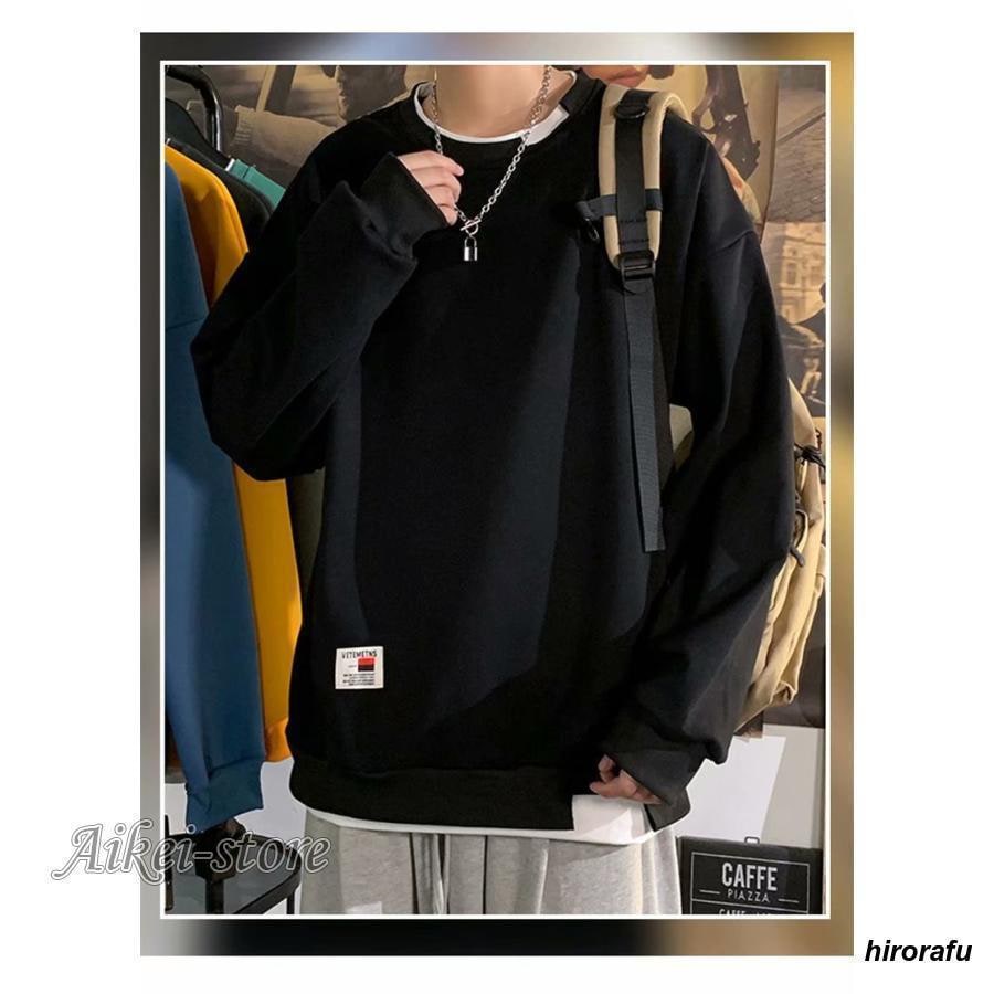 品質いいな新品 トレーナー メンズ 裏起毛 クルーネック プルオーバー フェイクレイヤード スウェット Tシャツ ゆったり 無地 厚手 スポーツ 春秋 冬 おしゃれ