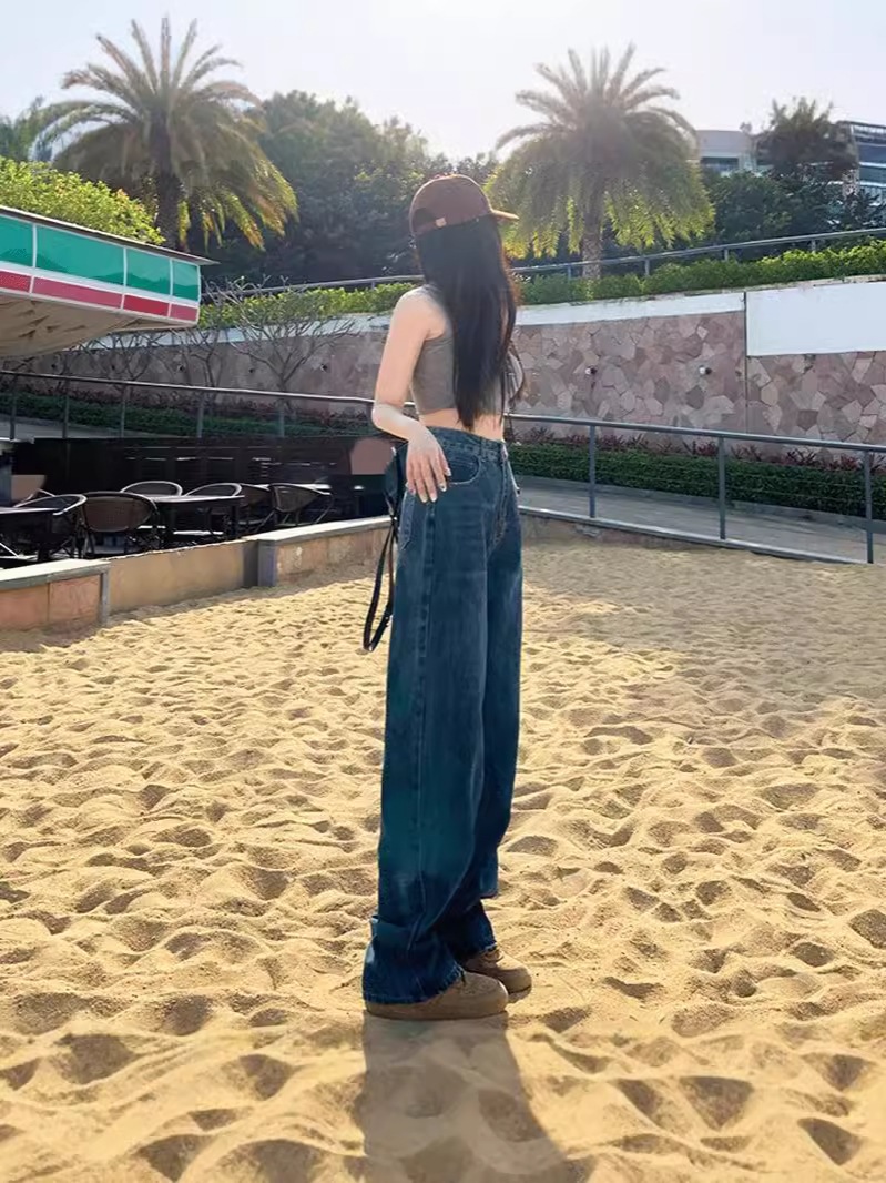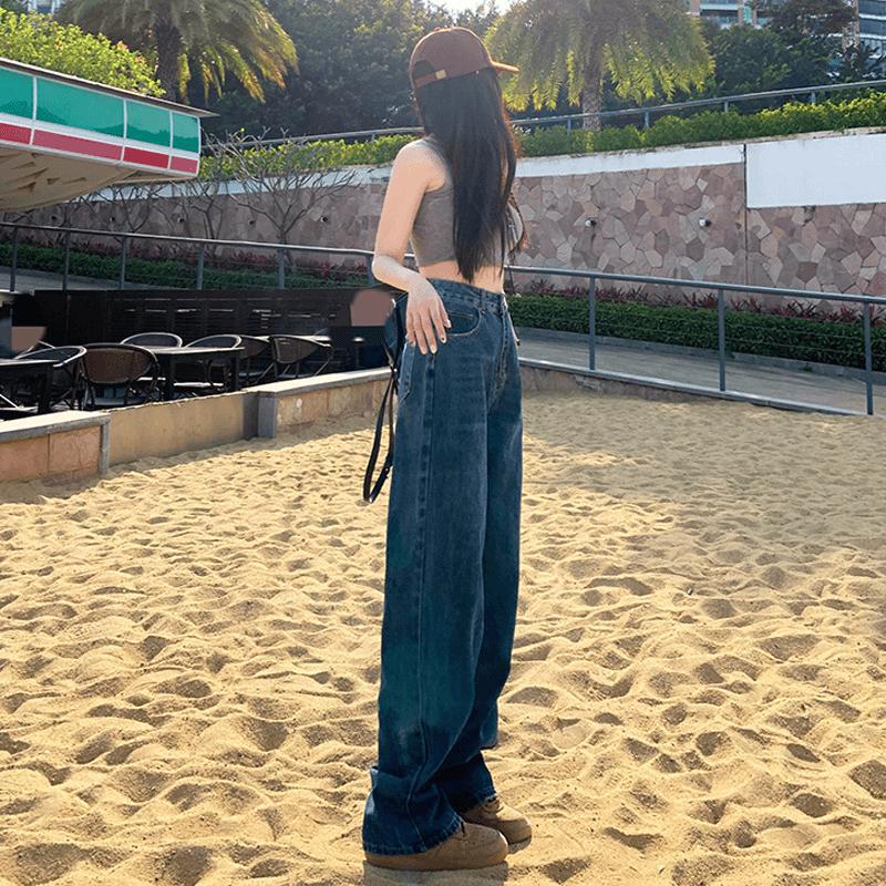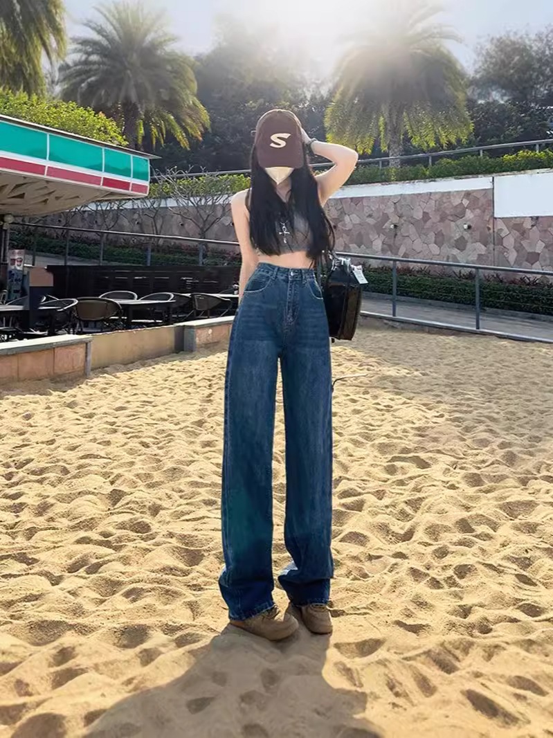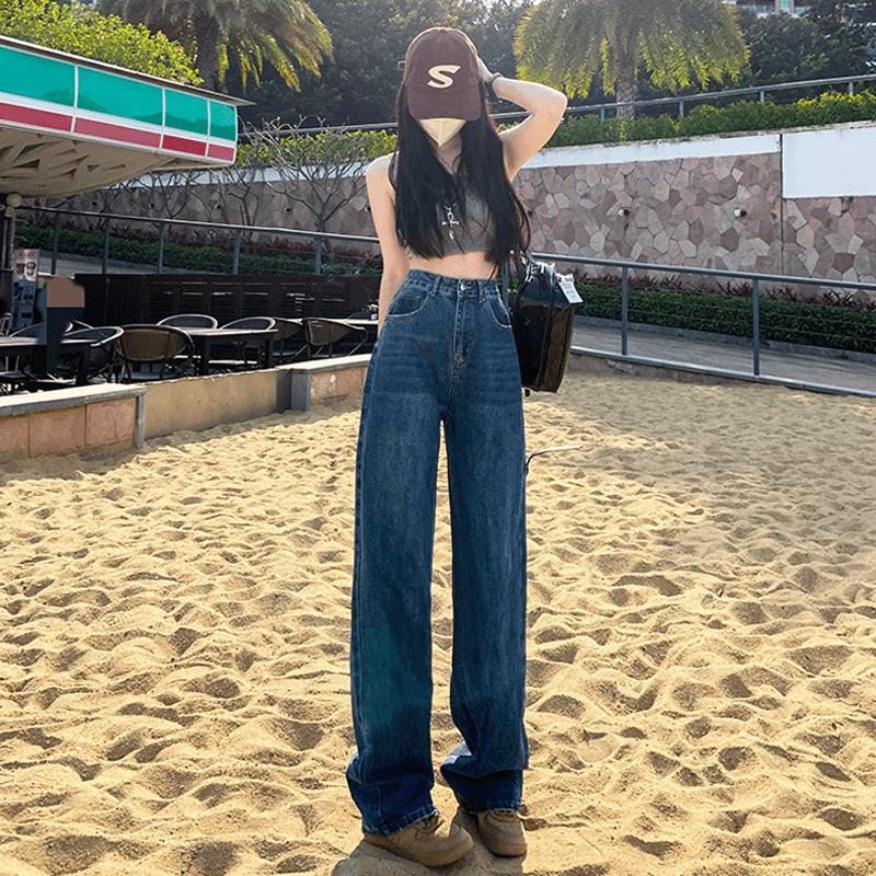 ハイウェスト デニムパンツ ロングパンツ 韓国ファッション 着痩せ効果 パンツ ストレート長ズボン デニム デニム ジーンズ