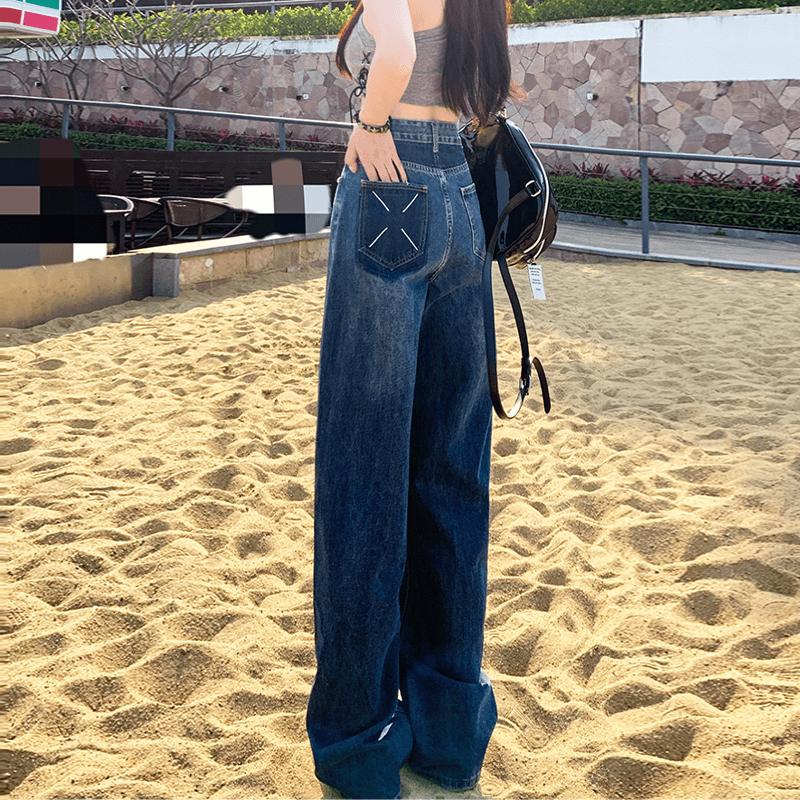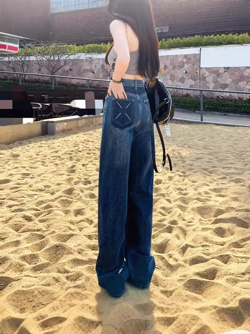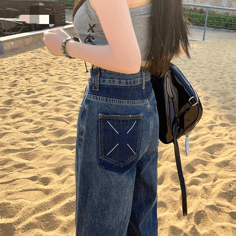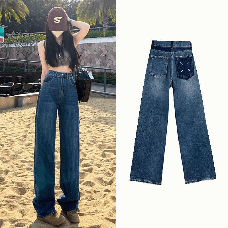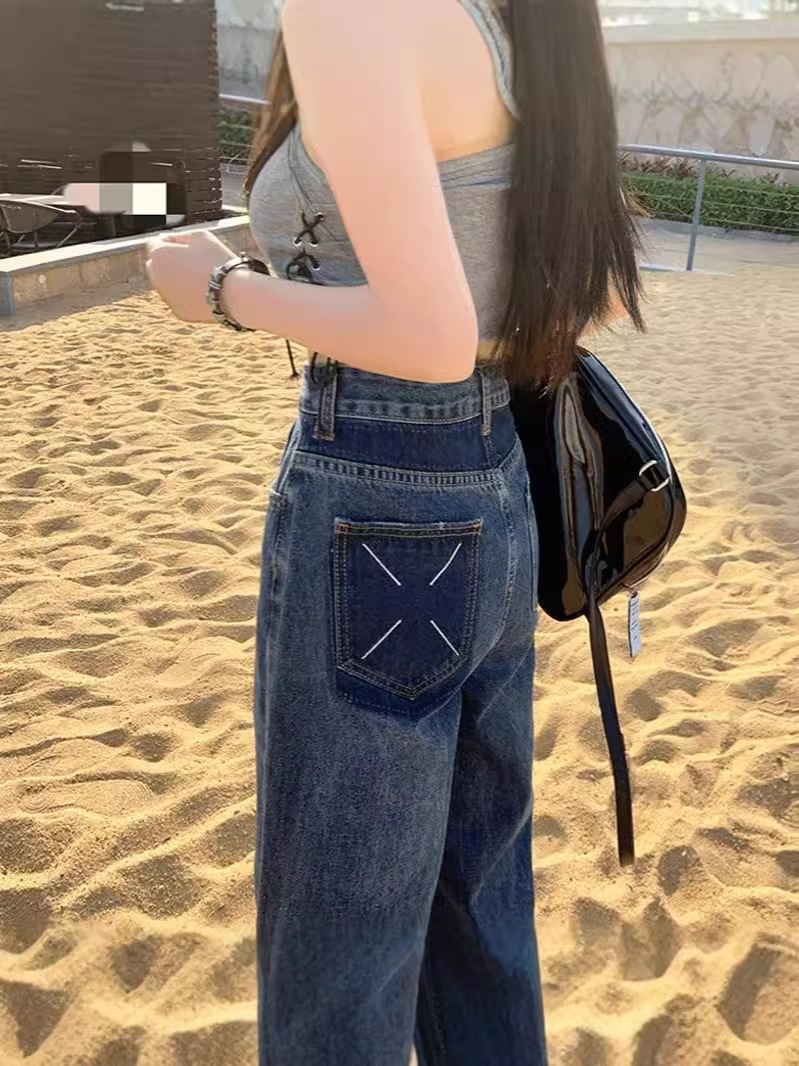 ハイウェスト デニムパンツ ロングパンツ 韓国ファッション 着痩せ効果 パンツ ストレート長ズボン デニム デニム ジーンズ