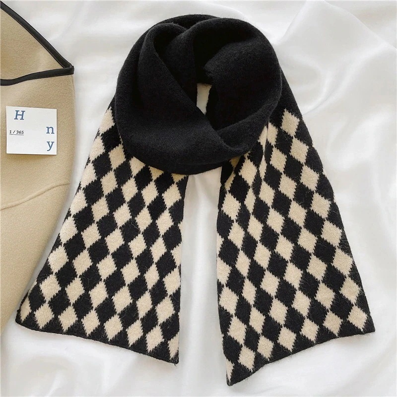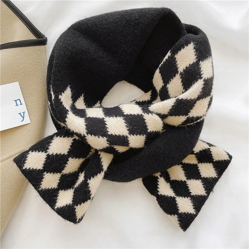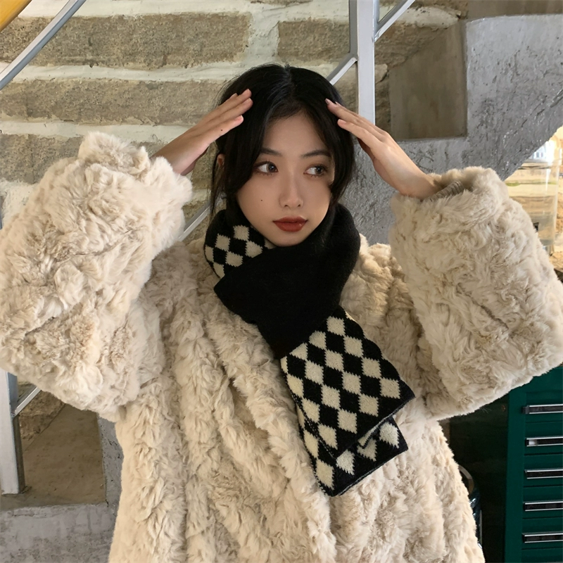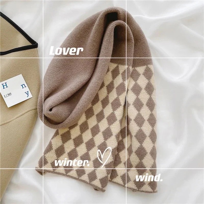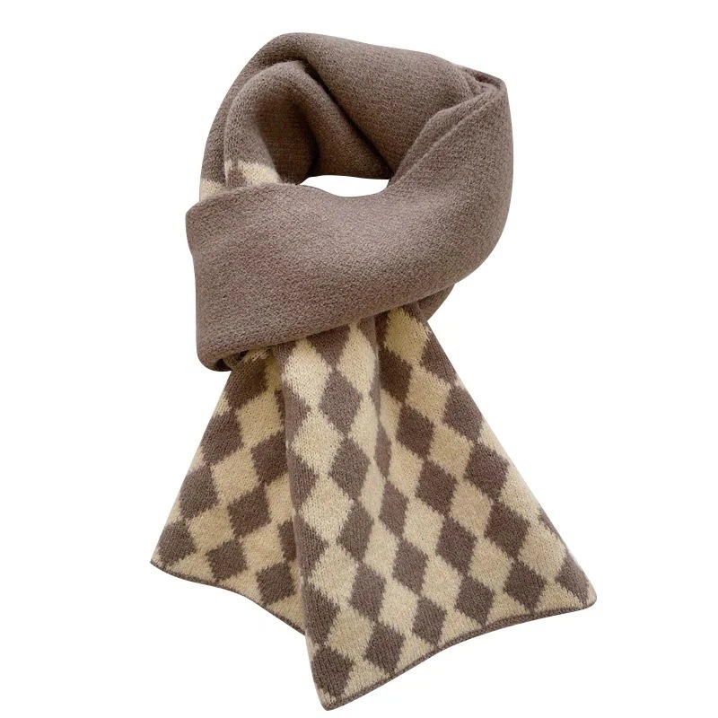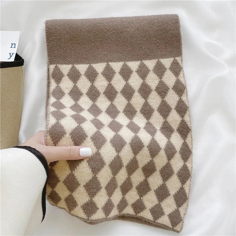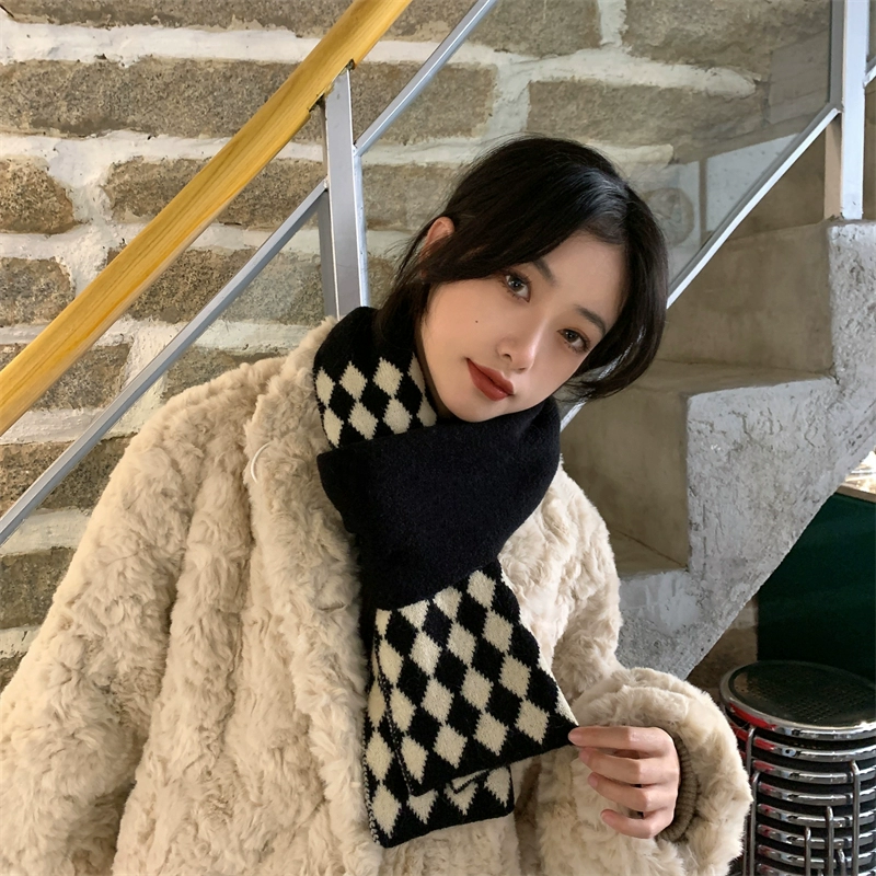 デイリーマフラー暖かぬくぬくレトロな菱格ニット毛糸のマフラー女性秋冬の外に超暖かい保温ネックを厚くして首を囲んでいるデイリーマフラー マフラー